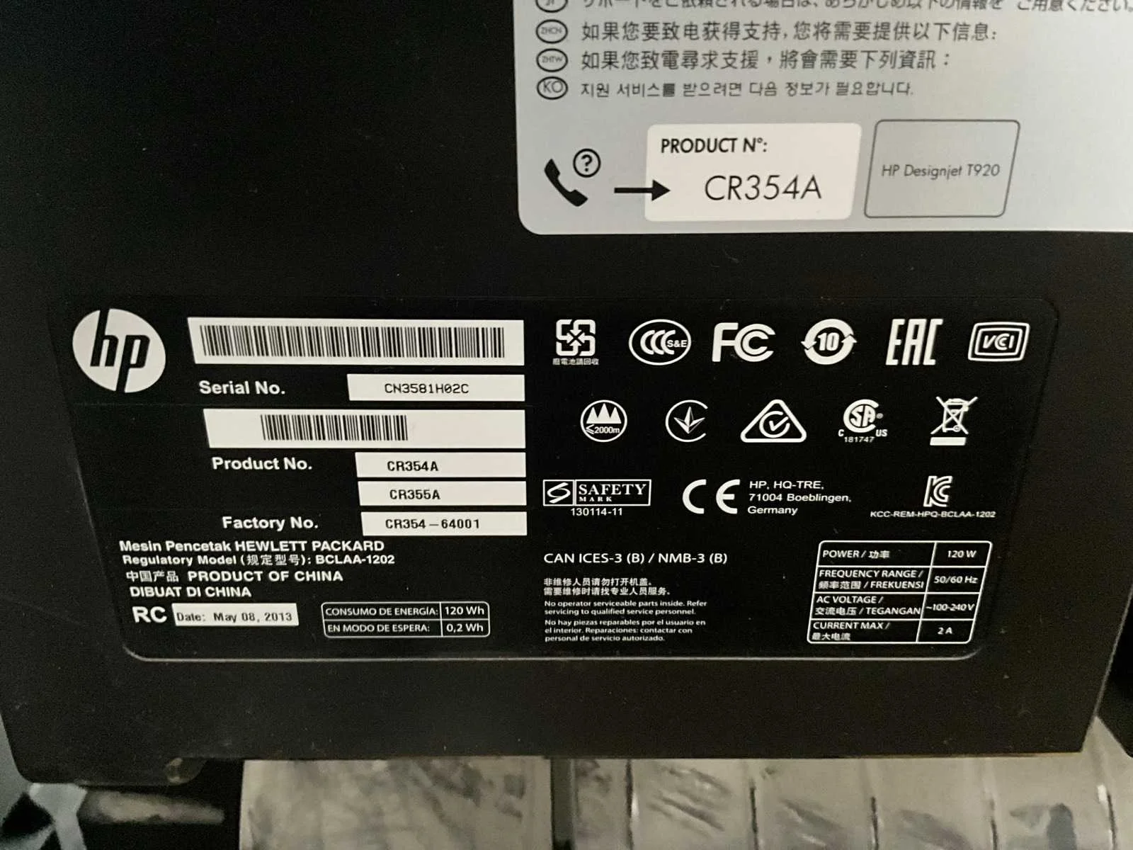 Compleet met enig toebehoren en 4 diverse Ink Cartridges HP en 1 printhead. Verrijdbaar. Nee Merk: HP Type: Designjet Model: T920 Lengte: 140cm Hoogte: 120cm