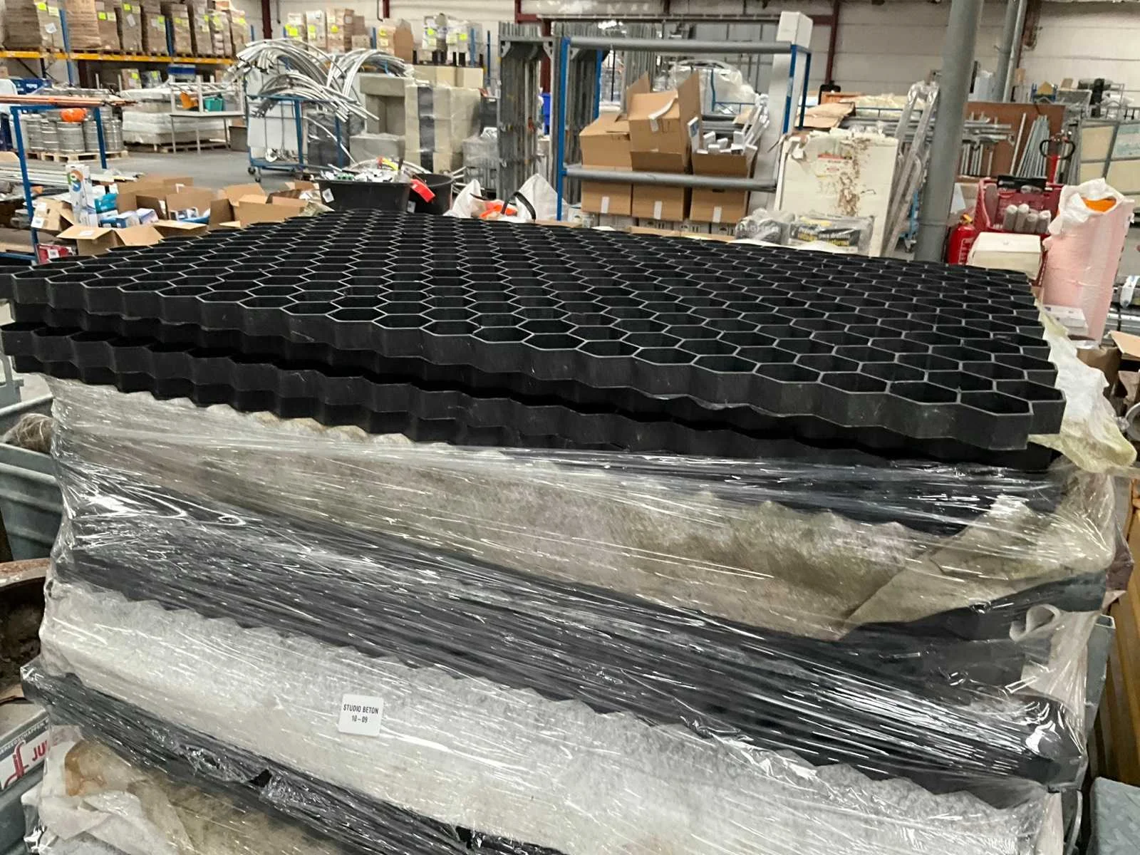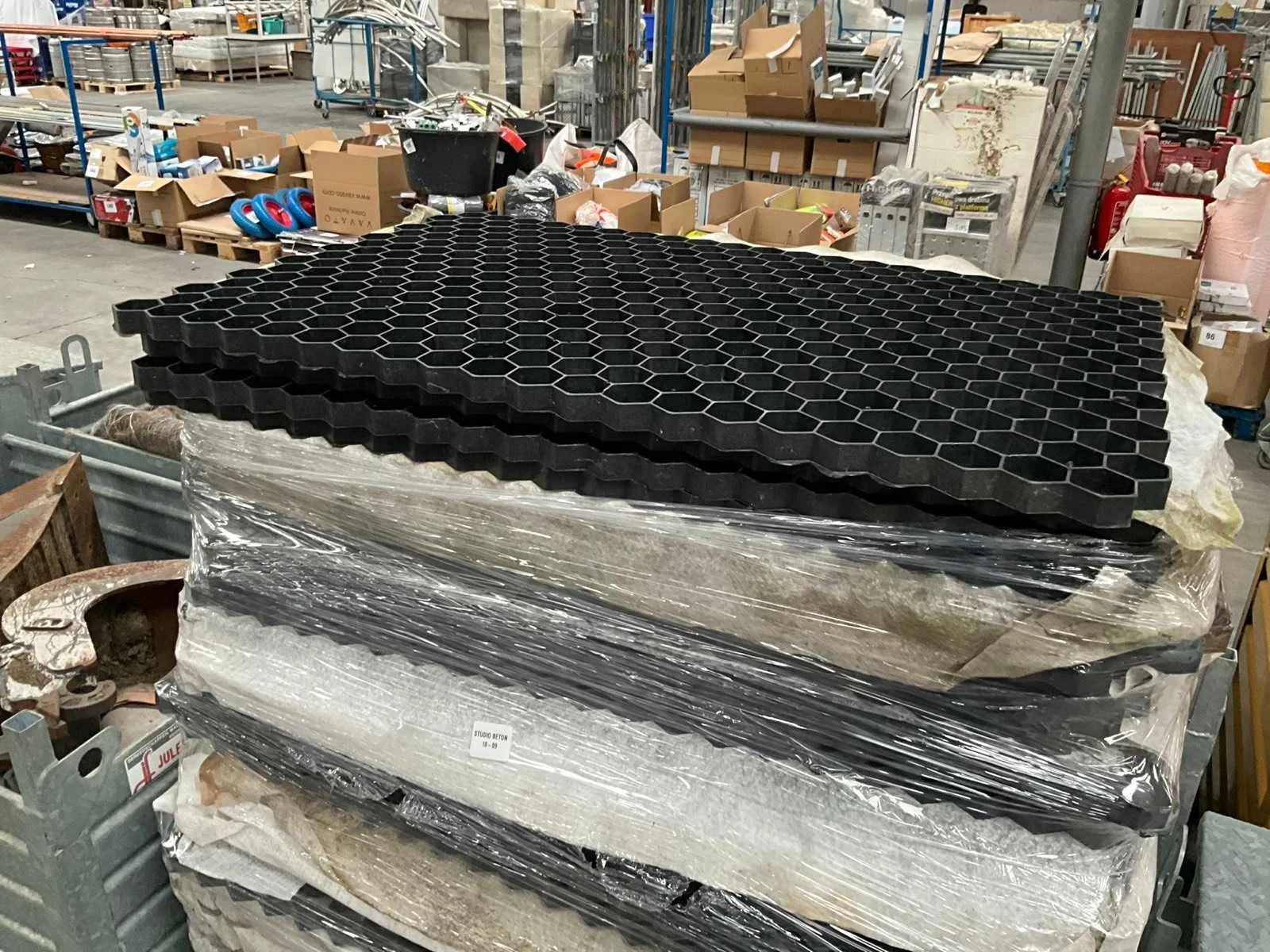 Waarvan het merendeel in de zwarte kleur, maar ook een deel witte exemplaren. Allen in kunststoffen uitvoering. Nee Lengte: 120cm Breedte: 80cm Hoogte: 3cm