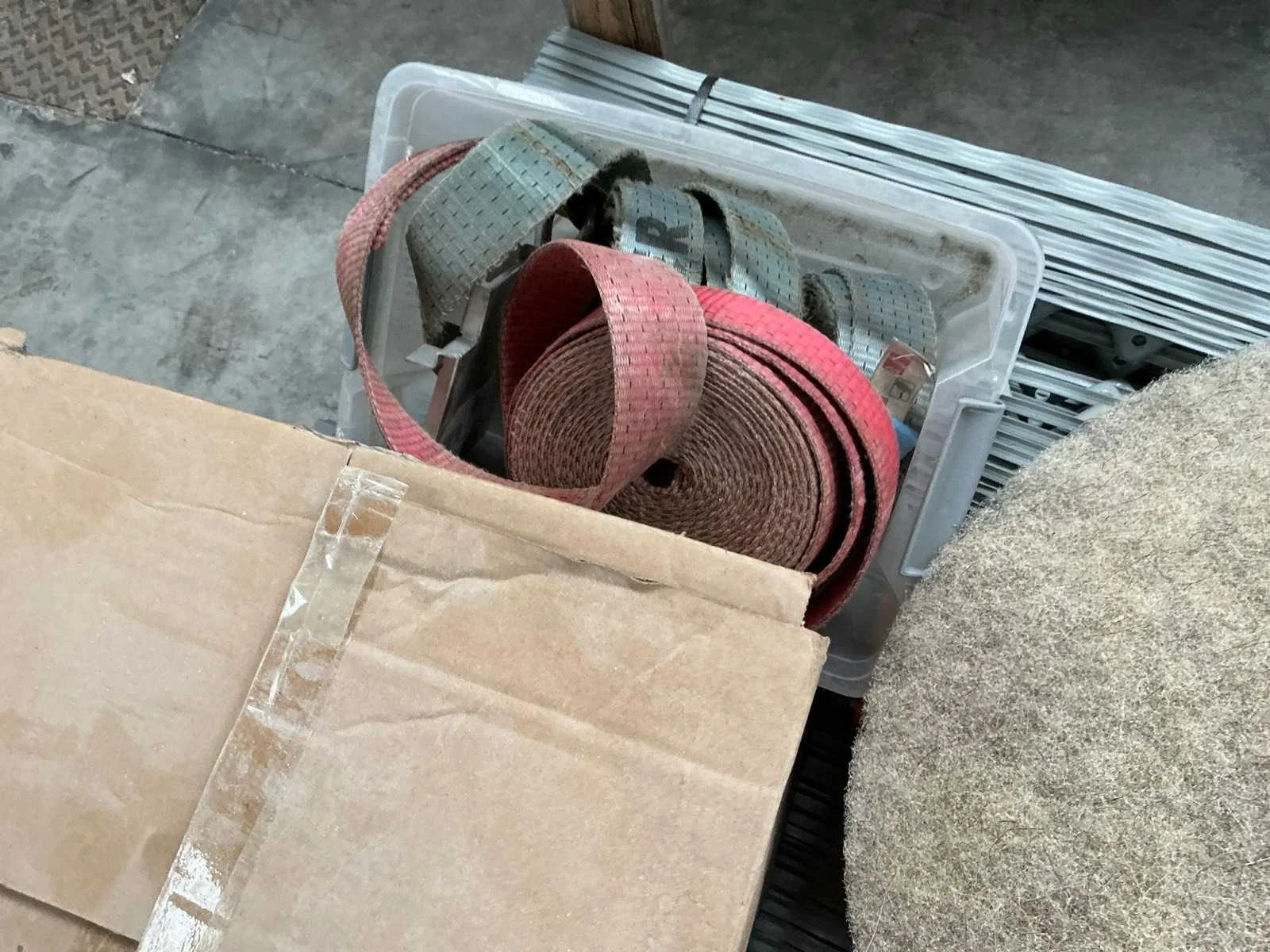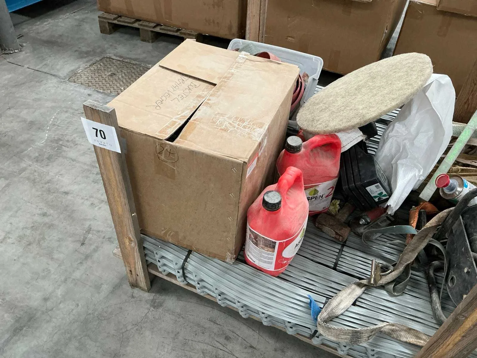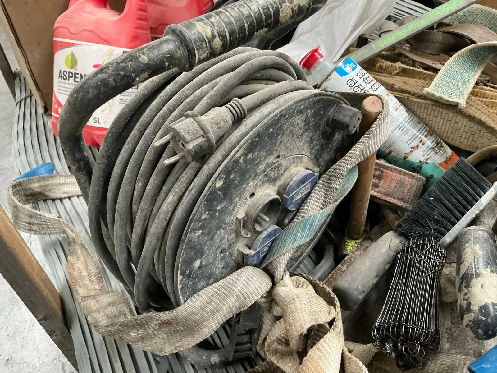 Bestaande uit grote partij PVC/kunststoffen bouwprofielen, 2x jerrycan ASPEN, 1x kabelhaspel, diverse spandbanden, diverse truwelen, siliconenspuit. Liggende op 1x pallet. Nee