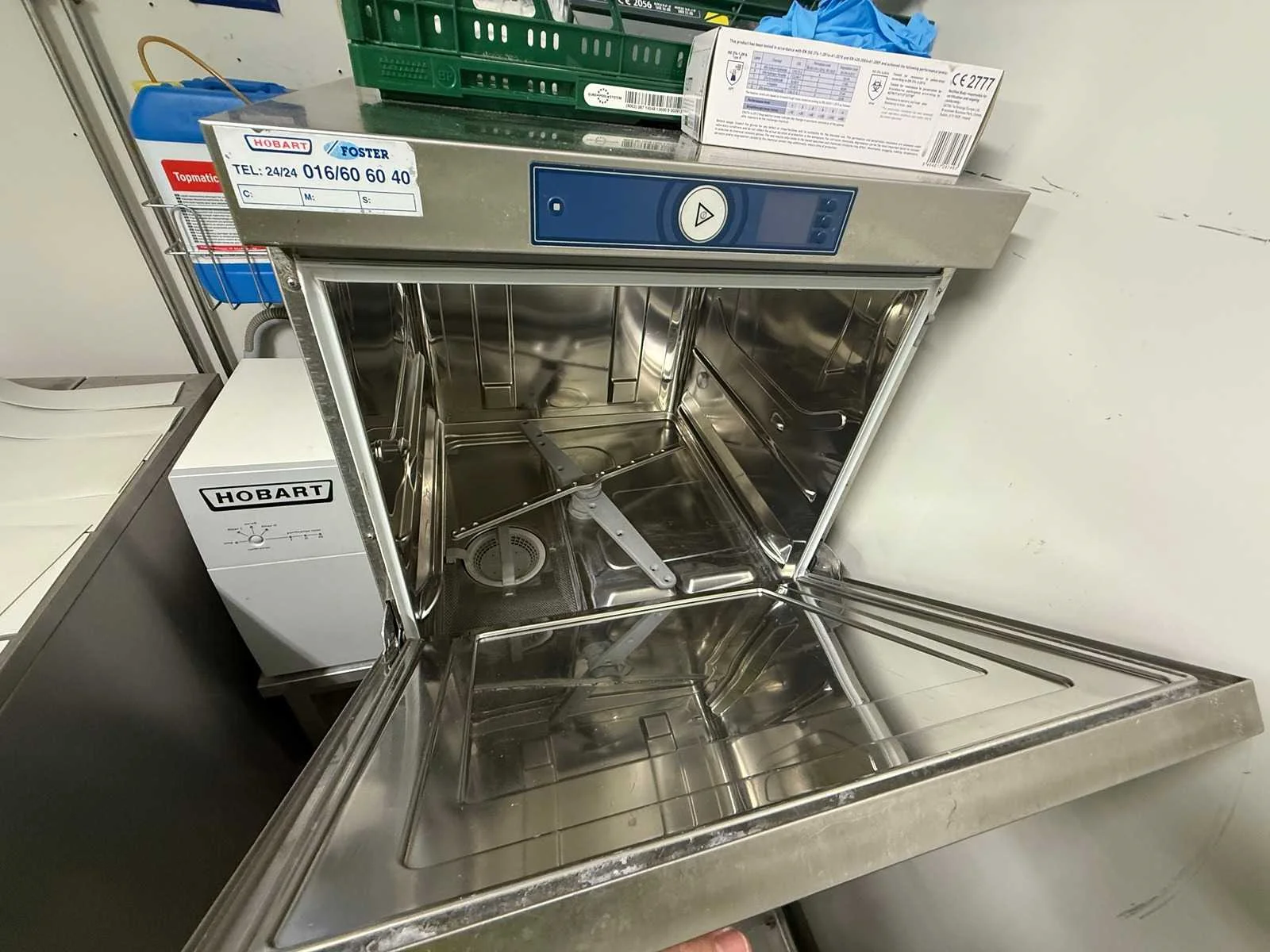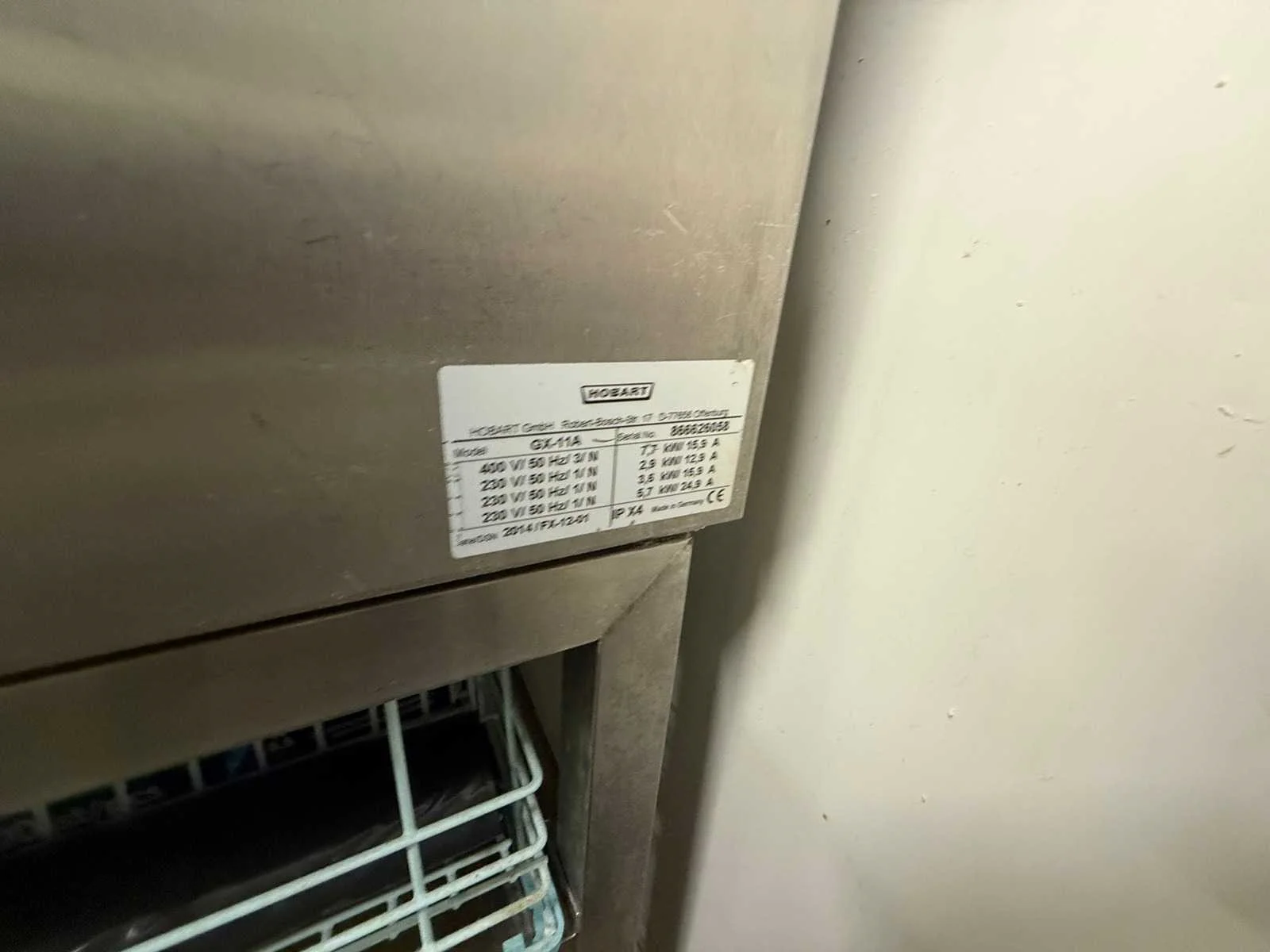 Eigenschap Waarde Type Frontlader / Glazen- en serviesvaatwasser Serie PROFI GXH Artikelnummer: GXH-703 Bouwjaar vermoedelijk 2014–2016 Capaciteit ca. 60 korven/uur (≈ 1.080 borden/uur) Programmatijden 60 / 90 / 120 sec Waterverbruik ± 2,5 liter per cyclus Vermogen totaal 6,7 kW (400 V / 3N~ / 50 Hz) Tankinhoud 10,8 liter Boilerinhoud 7,5 liter Materiaal Roestvrij staal (AISI 304) Afmetingen (B × D × H) 600 × 603 × 820 mm Ingangshoogte 425 mm Korfformaat 500 × 500 mm Aansluiting afvoer 40 mm slang Netto gewicht ca. 70 kg No Merk: Hobart Model: GXH-703 Product type: Profi Serie Vermogen: 6700W Spanning: 400V Gewicht: 70kg Lengte: 60cm Breedte: 60cm Hoogte: 82cm Materiaal: ss304 Aantal couverts: 1