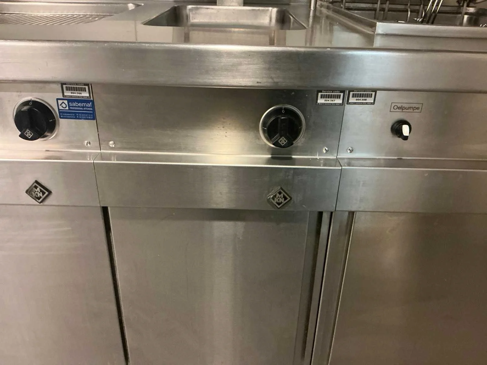 Set met 2x friteuse 1x grillplaat No Merk: Mkn Rvs: true Elektrisch: true Dubbel: true Thermostaat: true Aftapkraan: true Aansluiting: 400V Totale afmeting lxbxh: 240x86x90mm