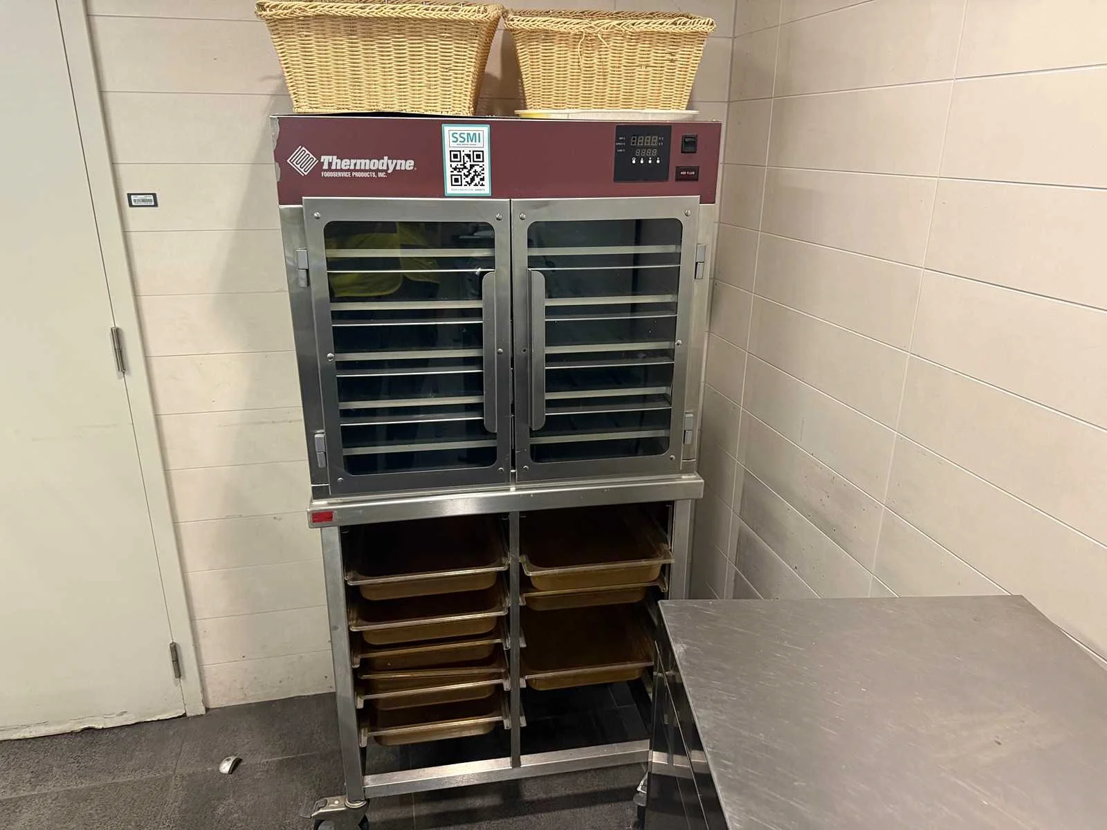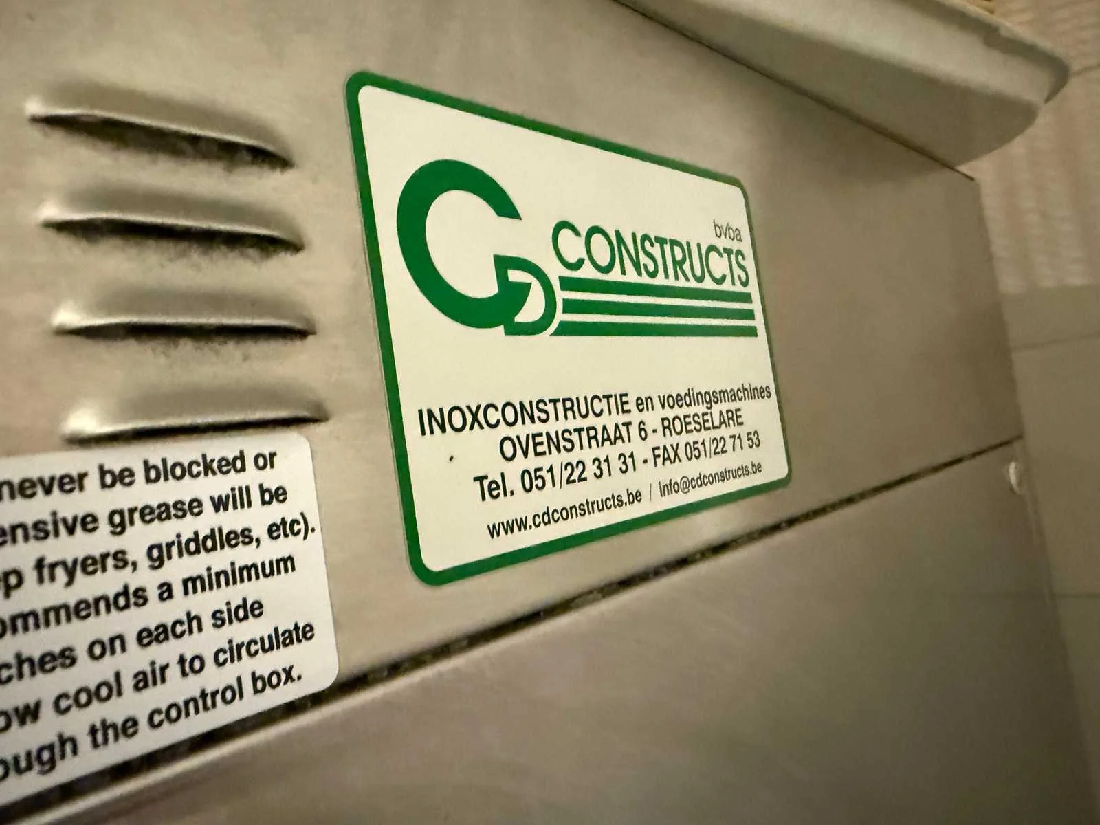 Ategorie Warmhoudkast / Warmhoudkast Model Waarschijnlijk model 700 Series of 744HW (afhankelijk van uitvoering) Aansluiting 230 V / 50–60 Hz (soms 400 V bij EU-uitvoering) Vermogen ± 2,5 – 3,5 kW Temperatuurbereik 60 °C – 95 °C Capaciteit ca. 10–12 GN 1/1 bak trays Afmetingen (geschat) 850 × 800 × 1700 mm Materiaal Volledig roestvrij staal (AISI 304) Display / bediening Digitaal paneel met temperatuurregeling Bijgeleverd onderstel RVS verrijdbaar frame met trayhouder (8–10 niveaus) Leverancier BE CD Constructs bvba – Roeselare (officiële verdeler) No Merk: Thermodyne Model: 700HW Lengte: 85cm Breedte: 80cm Hoogte: 170cm Materiaal: SS304