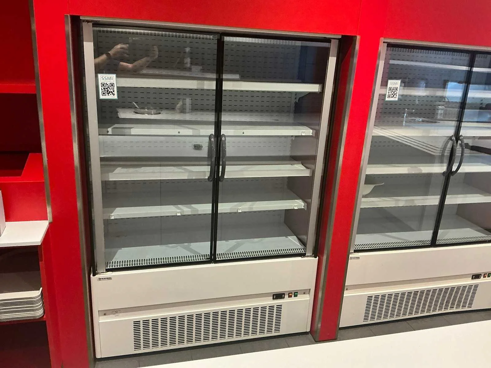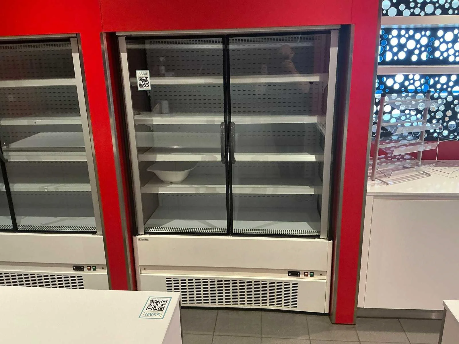 Aansluiting 230 V / 1 ph / 50 Hz Besturing Eliwell IDPlus 961 digitale thermostaat Deuren 2 schuifdeuren van dubbel glas Binnenverlichting LED, schakelbaar (oranje knop) Capaciteit ca. 500–600 L per kast Temperatuurbereik +2 °C ... +8 °C Koelmiddel R404A of R290 (onbekend, afhankelijk van typeplaatje) Afmetingen (per kast) ca. 200 cm h × 125 cm b × 75 cm d No