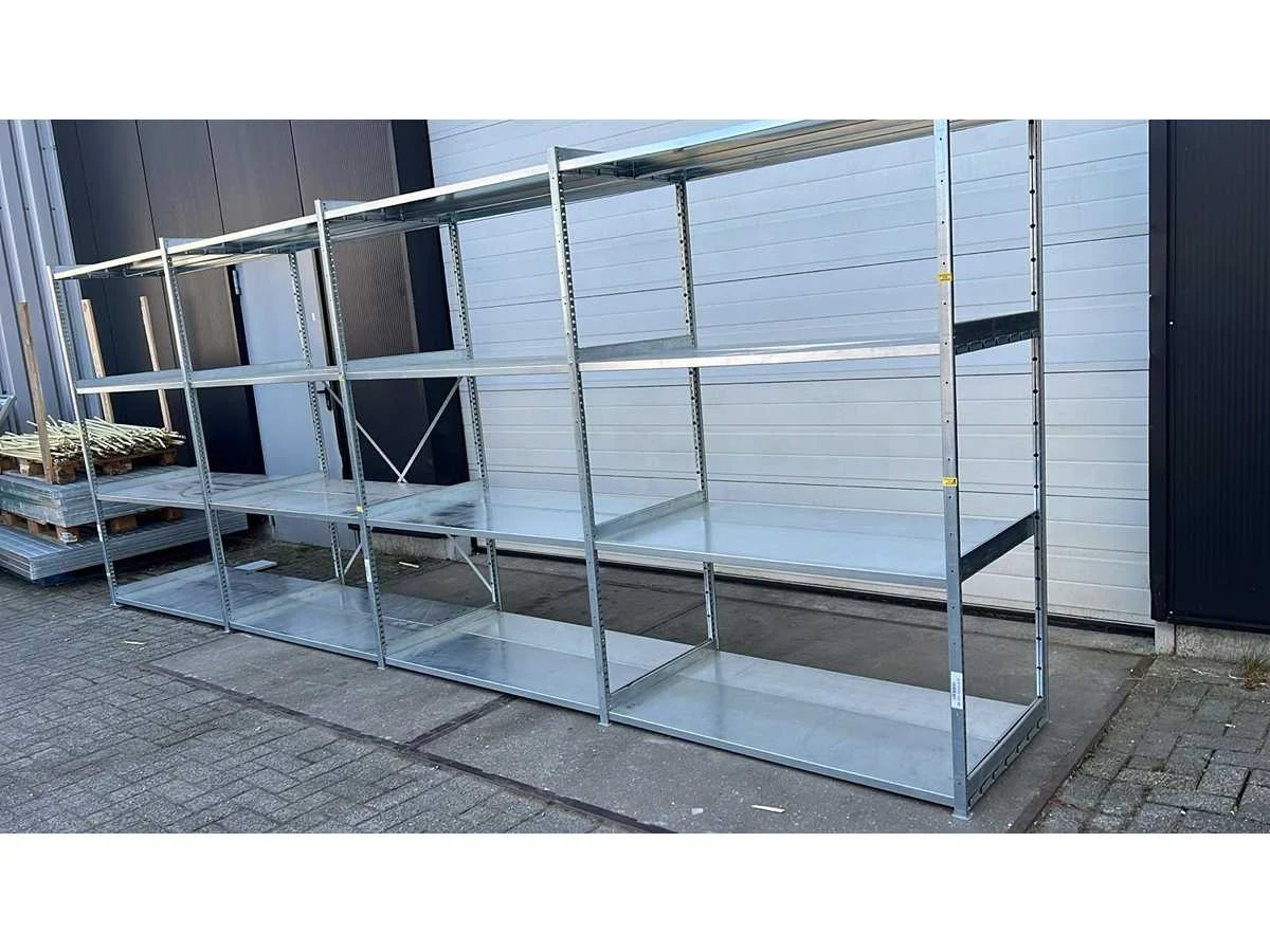 5x staander 2000x700mm; 16 legborden bestaande uit 2 delen 1280x300 en 1280x400mm; 7461*5/7462*16/7463*16 Nee Merk: GS3 Sectie afm. b: 700mm Sectie diepte: 1280mm Sectie afm. h: 2000mm Aantal staanders: 5 Aantal legborden: 16 Demontabel: true