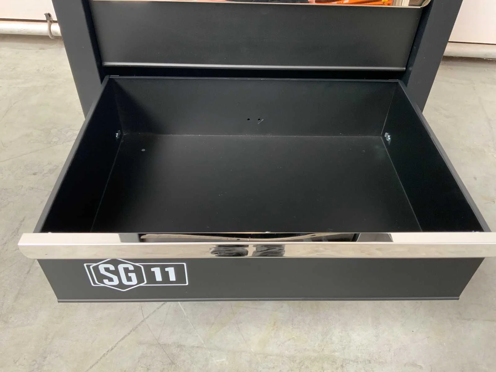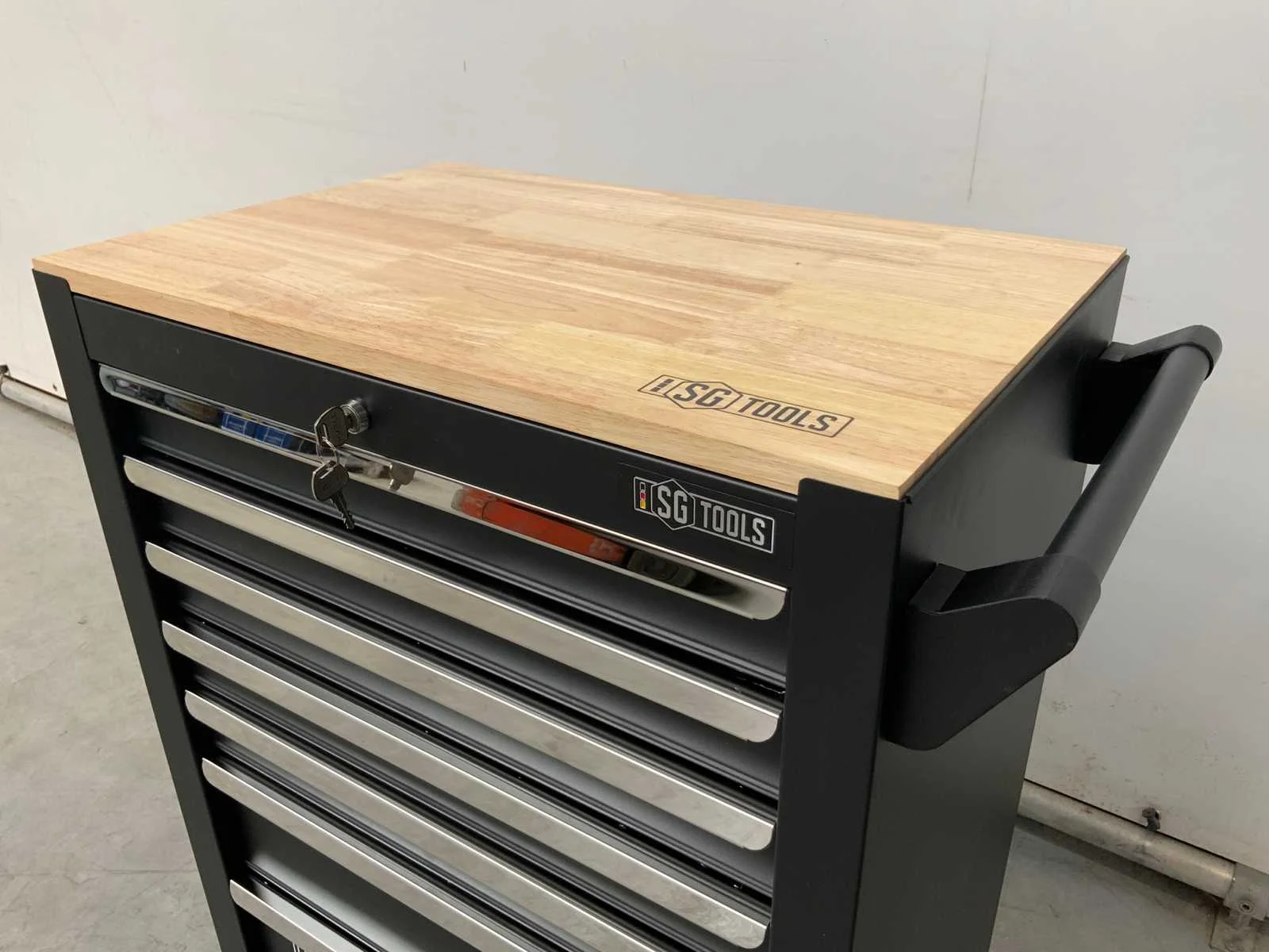 258 delig; schroevendraaiers; bitset; tangen; sleutels; etc; zwenkwielen met rem; 7 lades; 6 gevuld; Nee Merk: Stahlgruppe Type: SG11 Bouwjaar: 2023 Aantal laden: 7 Met inhoud: true Eigen gewicht: 80kg Totale afmeting L: 760mm Totale afmeting Breedte: 460mm Totale afmeting Hoogte: 980mm