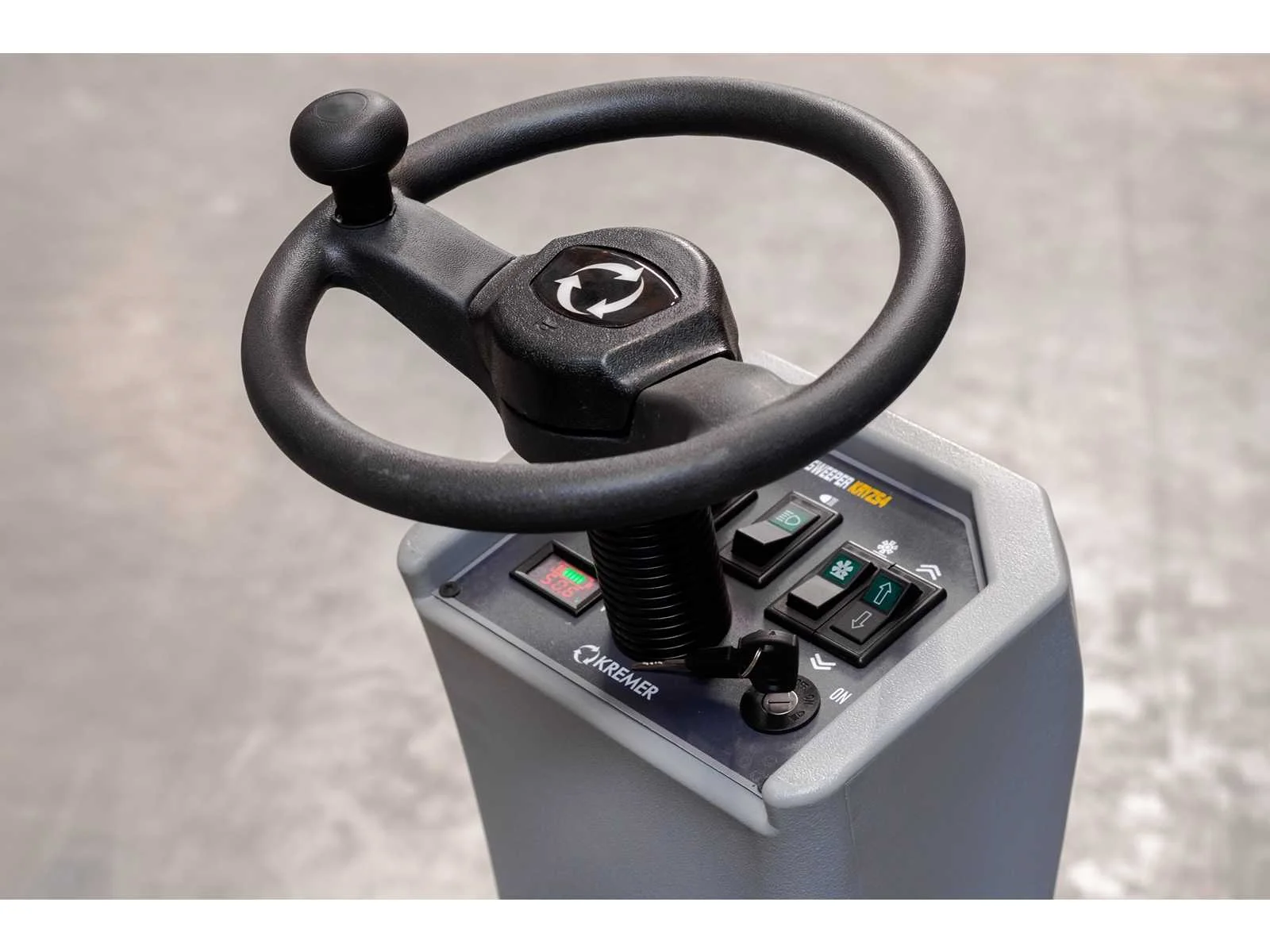 Sweeping width 1250 mm; Side brush width 2*400 mm; Walking motor 700 W; Battery capacity 48 v/ 65 ah * 4 pcs; Total weight 396 kgs; Width of main brush 500 mm; Work efficiency 6380 m2/h; Garbage capacity 80L; Roller brush motor 700W; Walking speed 0-10 Km/h; 80 liter vuilcontainer inhoud; 4782 Nee Merk: Kremer Type: KRYZS4 Bouwjaar: 2025 Elektrisch aangedreven: true Met oplader: true Eigen gewicht: 396kg Werkbreedte: 1250mm Totale afmeting L: 1600mm Totale afmeting Breedte: 1160mm Totale afmeting Hoogte: 1300mm