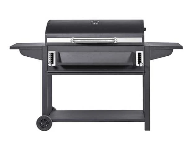 Product size: 164x65x108cm Cooking area: 915x450mm, Enamel steel wiring cookinggridsWarming rack: Enamel steel wiring warming rack Lid: Steel, with black powder coating lid withSSlidhandlewith front SS decoration part Thermometer: Stainless steel Firebox: Steel, with black powder coating Air vent: Stainless steel air vent with plastic handleCharcoal tray: Galvanized sheet charcoal tray, thickness 0.80mmTemperature control: 6 levels height adjustable by front gear systemLeft and Right side two firebox seperately Charcoal access door: Black powder coating charcoal access doors, 2pcsAsh tray: Steel, with black coating, easy remove out fromfrontsideSide table: Steel, integrated with 8 pcs wood bars, with total 6pcs S hooks Bottom shelf: Steel, integrated with wood bars Wheel: 2pcs 6 inch plastic wheels Legs: Steel tube legs, with Stainless steel beer opener Nee