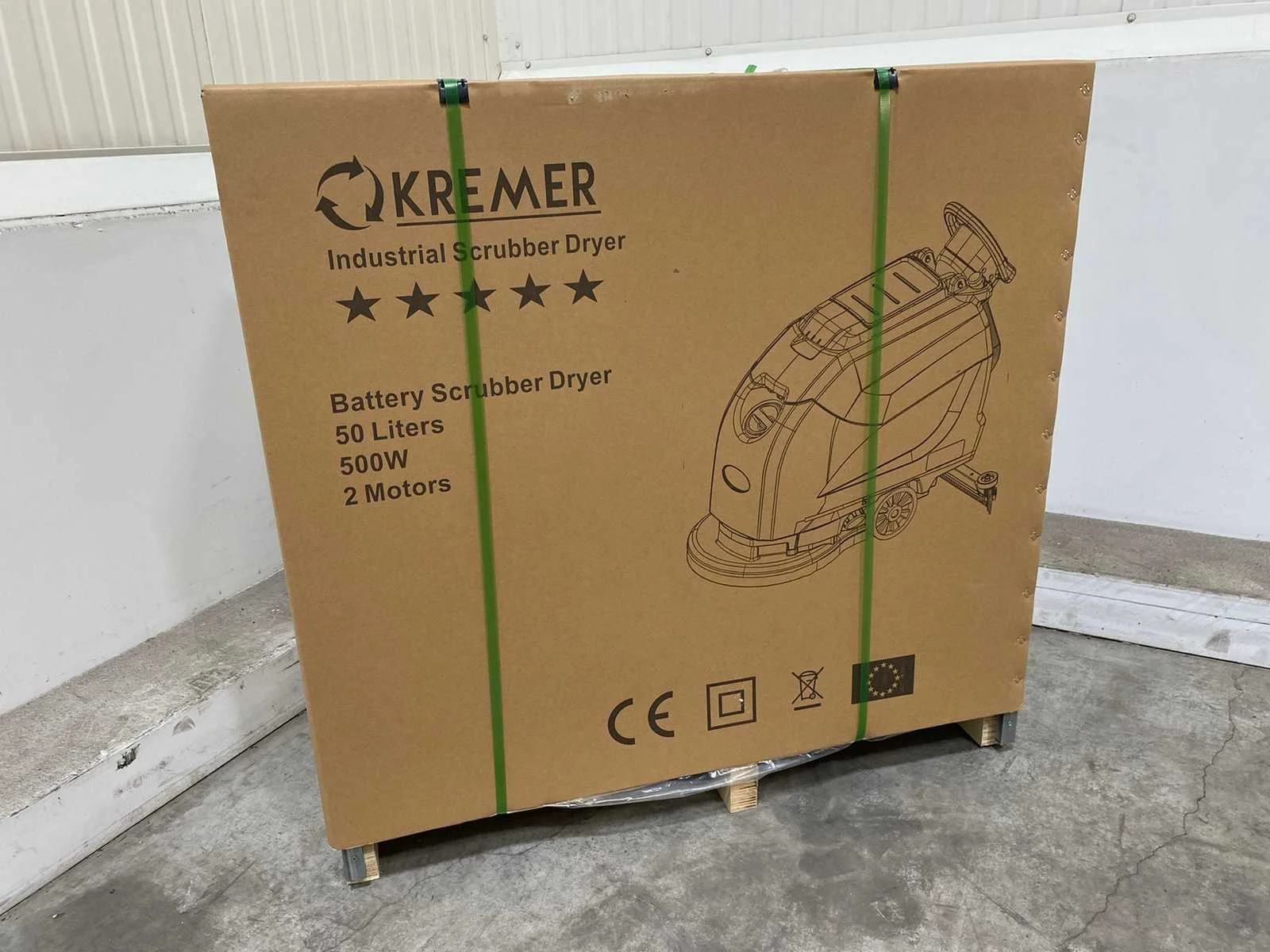<li><b>vloerschrobmachine</b></li> <li><b>merk:</b> Kremer</li> <li><b>type:</b> KRFL50-A</li> <li><b>functie:</b> schrobben en drogen in 1 cyclus</li> <li><b>capaciteit:</b> 2000 m² per uur</li> <li><b>voorzien van:</b> instelbare borsteldruk</li> <li><b>borstel diameter:</b> 510 mm</li> <li><b>borstel snelheid:</b> 175 toeren per minuut</li> <li><b>vuilwatertank:</b> 50 liter vuil watertank</li> <li><b>proper watertank:</b> 50 liter proper watertank</li> <li><b>aantal motoren:</b> 2 motoren</li> <li><b>vermogen:</b> 2 x 500 watt</li> <li><b>batterij:</b> 24 V / 100 Ah batterij</li> <li><b>inclusief:</b> acculader aanwezig</li> <li><b>handleiding:</b> handleiding aanwezig</li> <li><b>gewicht:</b> 160 kg</li> <li><b>staat:</b> ongebruikt in de originele verpakking</li> Nee Merk: Kremer Type: KR-FL50A