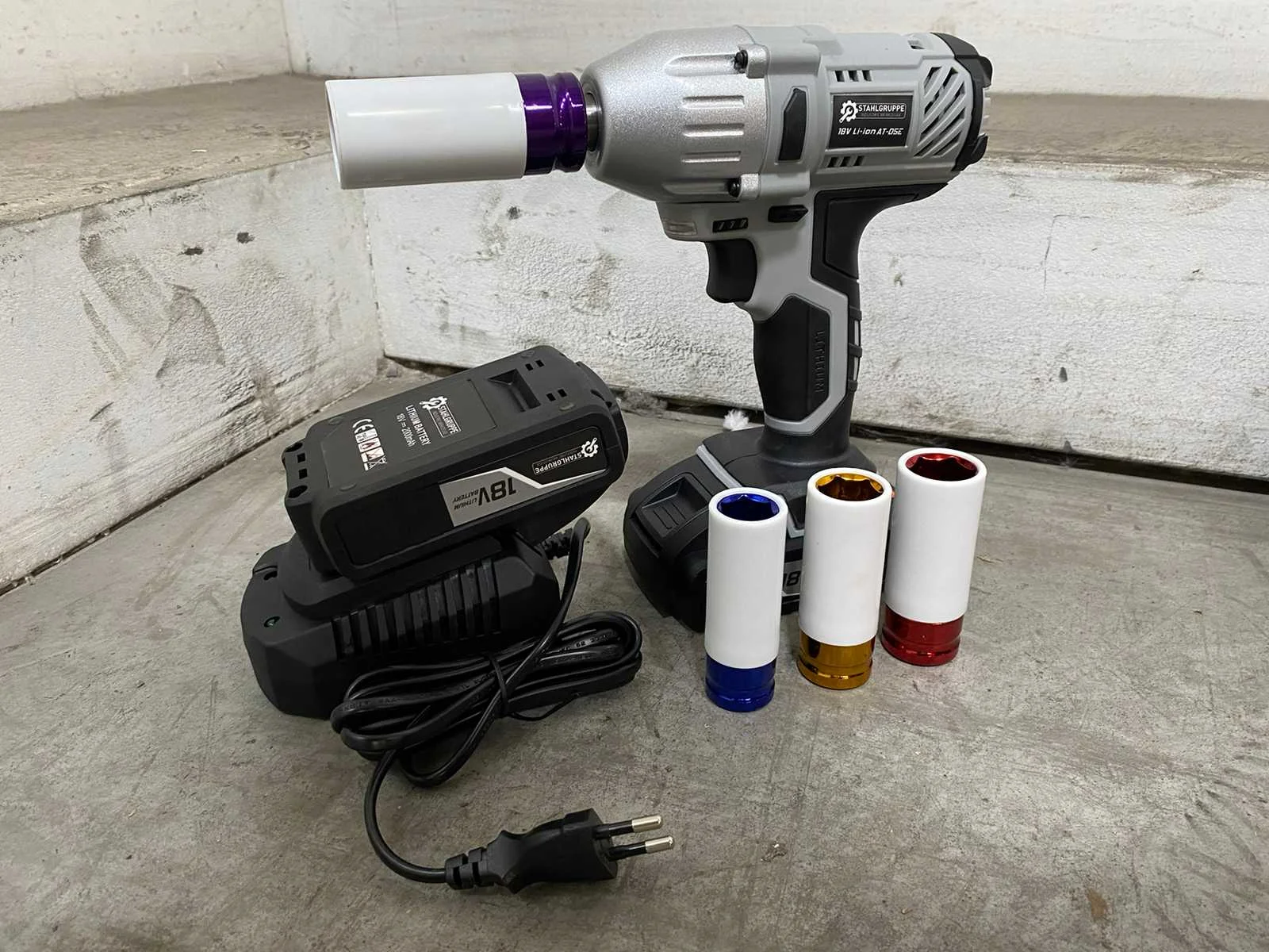 <li><b>Accu slagmoersleutel</b></li> <li><b>Koppel:</b> 330 Nm</li> <li><b>Voltage:</b> 18 volt</li> <li><b>Accu:</b> 2.0 Ah accu</li> <li><b>Toeren per minuut:</b> 3000 RPM</li> <li><b>Aantal accu’s:</b> 2 accu’s</li> <li><b>Acculader:</b> Acculader inbegrepen</li> <li><b>Inbegrepen:</b> 4 slagmoer doppen (maten: 17-19-21-22 mm)</li> <li><b>Voorzien van:</b> Werklamp en batterij indicator</li> <li><b>Staat:</b> Ongebruikt, in de originele verpakking</li> Nee Merk: Stahlgruppe