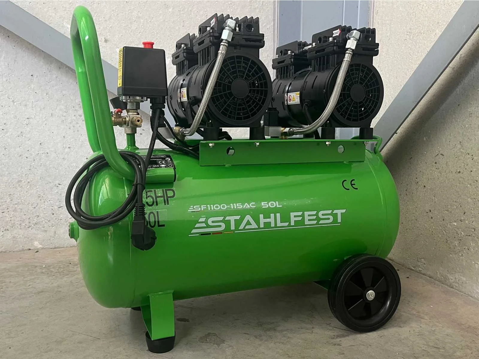 <li><b>olievrije luchtcompressor</b></li> <li><b>eigenschap:</b> super stil</li> <li><b>buffertank:</b> 50 liter buffertank</li> <li><b>luchtstroom:</b> 204 liter per minuut</li> <li><b>uitgangen:</b> 2 uitgangen</li> <li><b>capaciteit:</b> 8 bar / 115 psi</li> <li><b>motorvermogen:</b> 1100 watt</li> <li><b>aansluiting:</b> 230 volt</li> <li><b>handleiding:</b> inclusief handleiding</li> <li><b>staat:</b> ongebruikt, in de originele verpakking</li> Nee Merk: Stahlfest Type: 50 liter