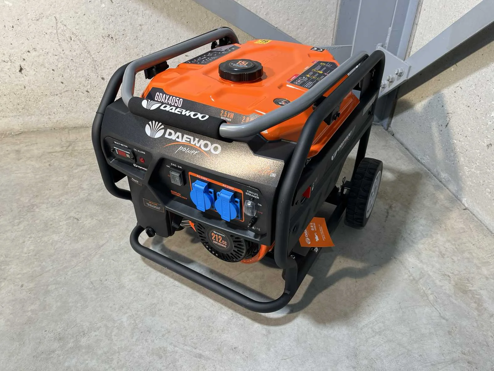 <li><b>merk:</b> Daewoo</li> <li><b>type:</b> GDAX4050</li> <li><b>vermogen:</b> 2.8 kVA / 2800 watt</li> <li><b>motor:</b> 212 cc, 4-takt benzinemotor</li> <li><b>starten:</b> trekstarter</li> <li><b>stopcontacten:</b> 2 x 230 Volt (CEE 7/3 – Schuko)</li> <li><b>beveiliging:</b> zekeringautomaat</li> <li><b>eigenschappen:</b> digitale multimeter display</li> <li><b>mobiel:</b> 2 wielen en uitklapbaar handvat</li> <li><b>benzinetank:</b> 15 liter benzinetank</li> <li><b>milieuklasse:</b> euro 5</li> <li><b>gewicht:</b> 45 kg</li> <li><b>beschermingsgraad:</b> IP23M</li> <li><b>staat:</b> ongebruikt en in de originele verpakking</li> Nee Merk: Daewoo Type: GDAX4050