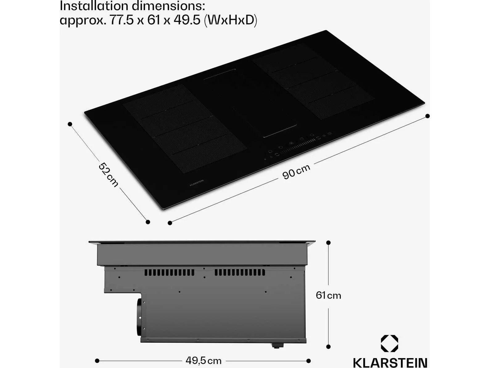 Kenmerken: 2-in-1 oplossing: combinatie van inductiekookplaat en afzuigkap Krachtig en efficiënt: Zuigkracht van 600 m³/h, energie-efficiëntieklasse A, 6.800 W inductiekookplaat met flexibele zone Ruimtebesparend ontwerp: meer ruimte in de boven- en onderkasten dankzij de strakke installatie Esthetisch en gebruiksvriendelijk: centrale lay-out voor een aantrekkelijk uiterlijk en digitale aanraakbediening voor extra comfort Eenvoudig schoon te maken: zachte, ononderbroken kookplaat voor moeiteloze reiniging en vaatwasmachinebestendig vetfilter voor moeiteloos onderhoud Omvang van de levering: Grootte: Totale afmetingen: ca. 70 x 30 x 90 cm (BxHxD) Afmetingen van de glasplaat: ca. 70 x 0 x 90 cm (BxHxD) Afmetingen motor: ca. 30 x 33,5 x 30 cm (BxHxD) Totaal gewicht: ca. 22,5 kg Artikelnummer: 10045558 Non