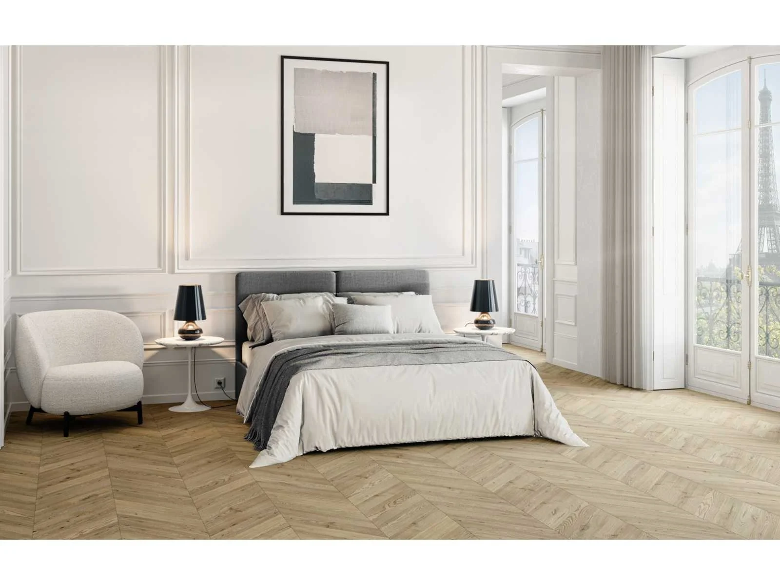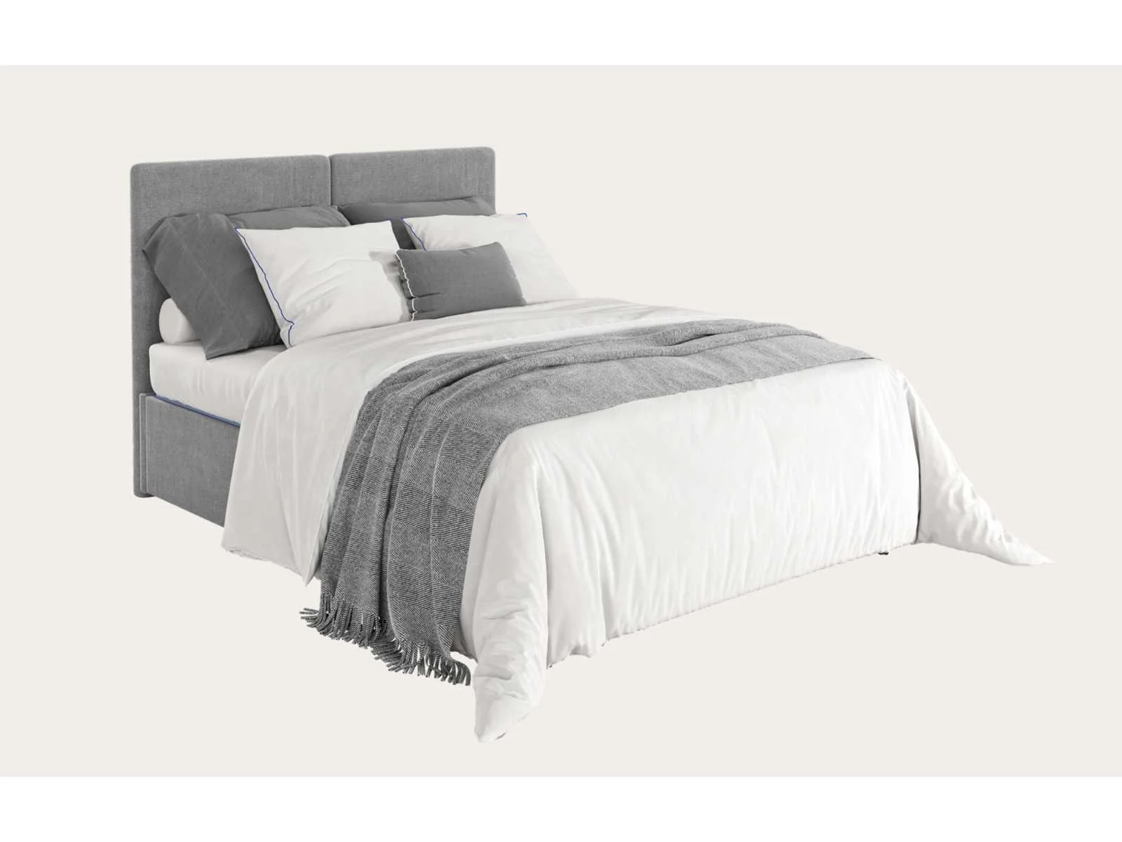 Borstbed bekleed met een vlekbestendige gemêleerde stof Speciale ruimtebesparing, incl. stijve vloer Kofferbak met een grote opslagcapaciteit Ultra-resistente grenenhouten latten Vrijstaand en eenvoudig te installeren hoofdeinde Gedemonteerd geleverd voor gemakkelijke levering Eigentijds en stedenbouwkundig ontwerp De kwaliteit en knowhow van een beddengoed professional Non