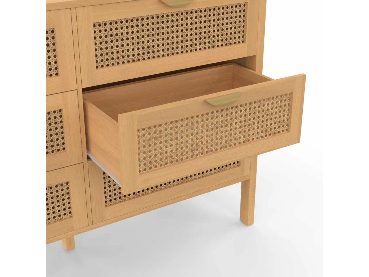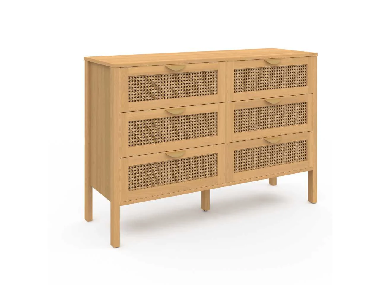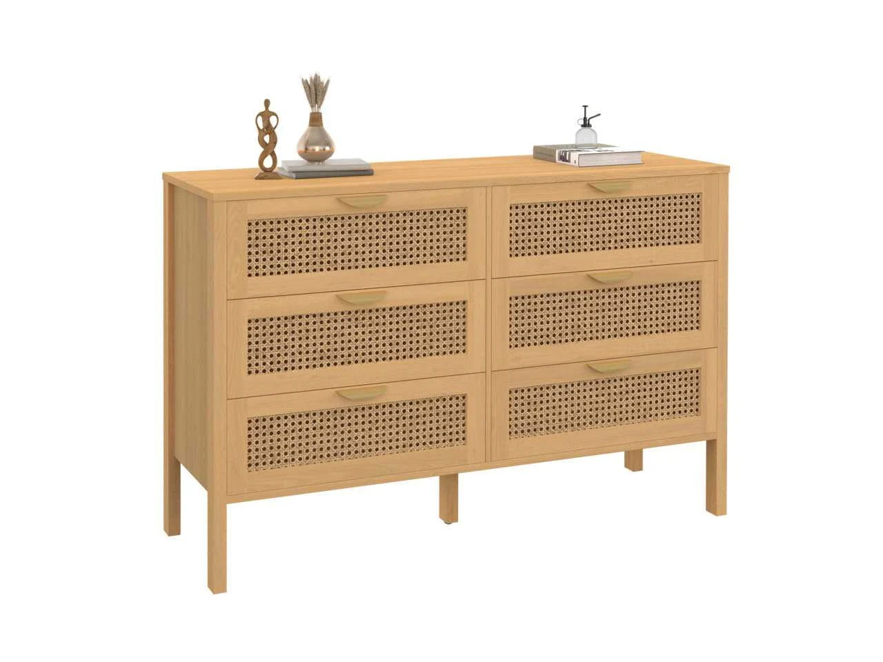 Totale afmetingen: (L) 115 x (B) 40 x (H) 80 cm Afmetingen lade: 54 x 19,5 cm Afmetingen van de binnenkant van de lades: 49,5 x 28,5 x 17,5 cm Breedte ladeframe: 40 mm Hoogte poten: 17,5 cm Afmetingen van de poten (structuur): 2,5 x 4 cm Materialen: 15 mm en 12 mm houtdeeltjes + MDF Capaciteit: 30 kg Kleur: Hout / naturel Zelf in elkaar zetten: ja Hardware inbegrepen: ja Non