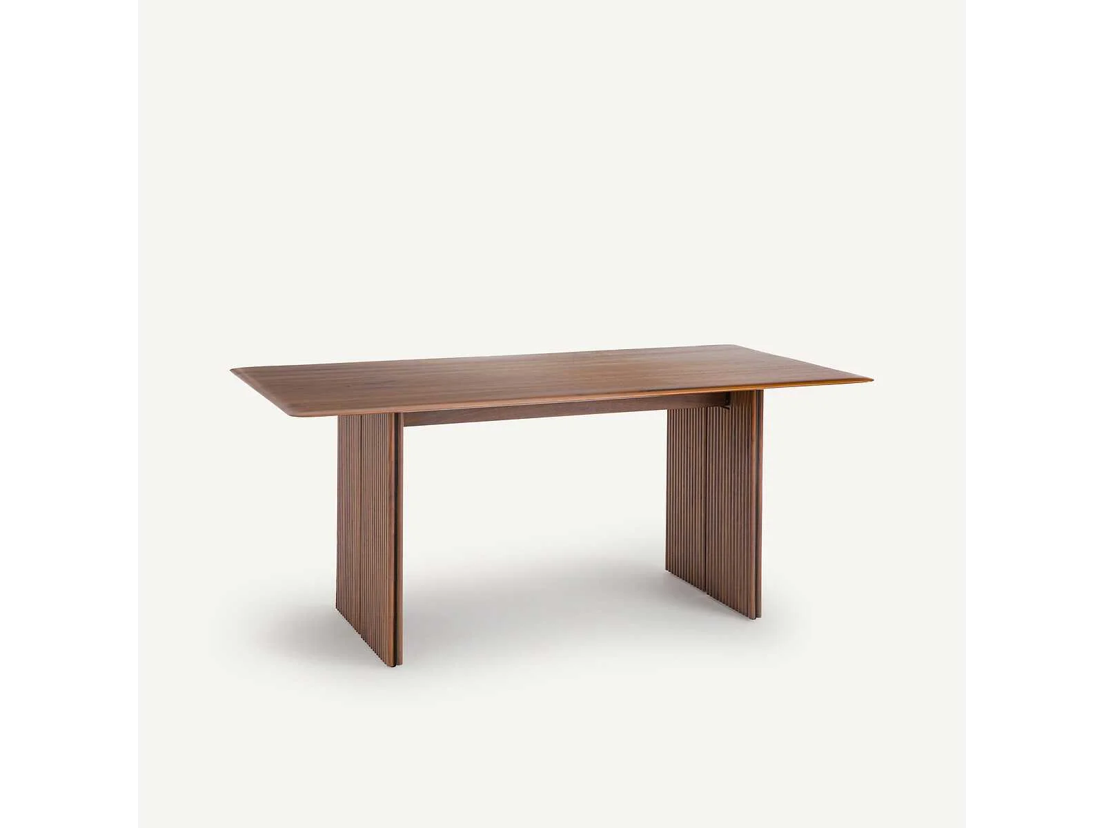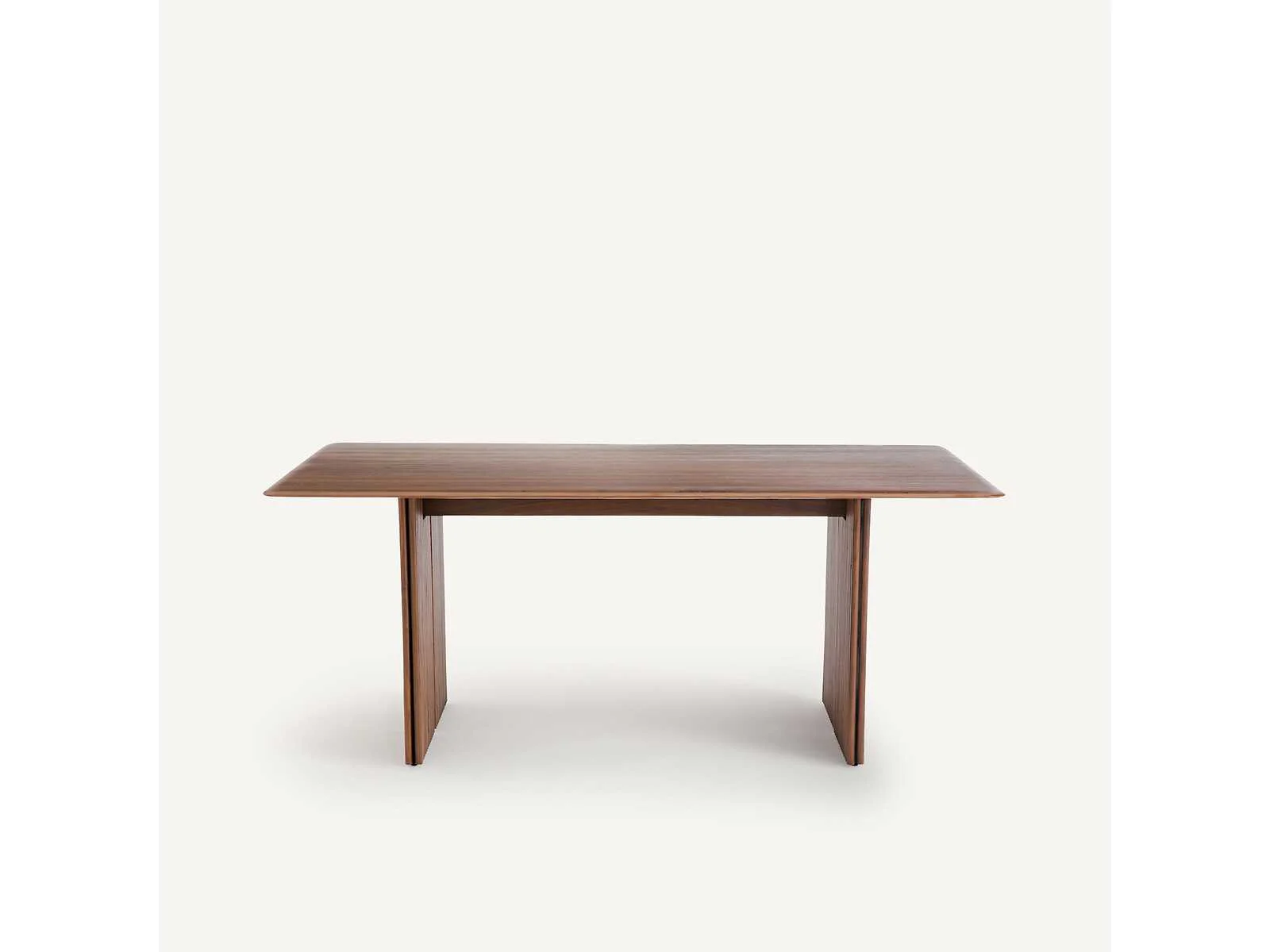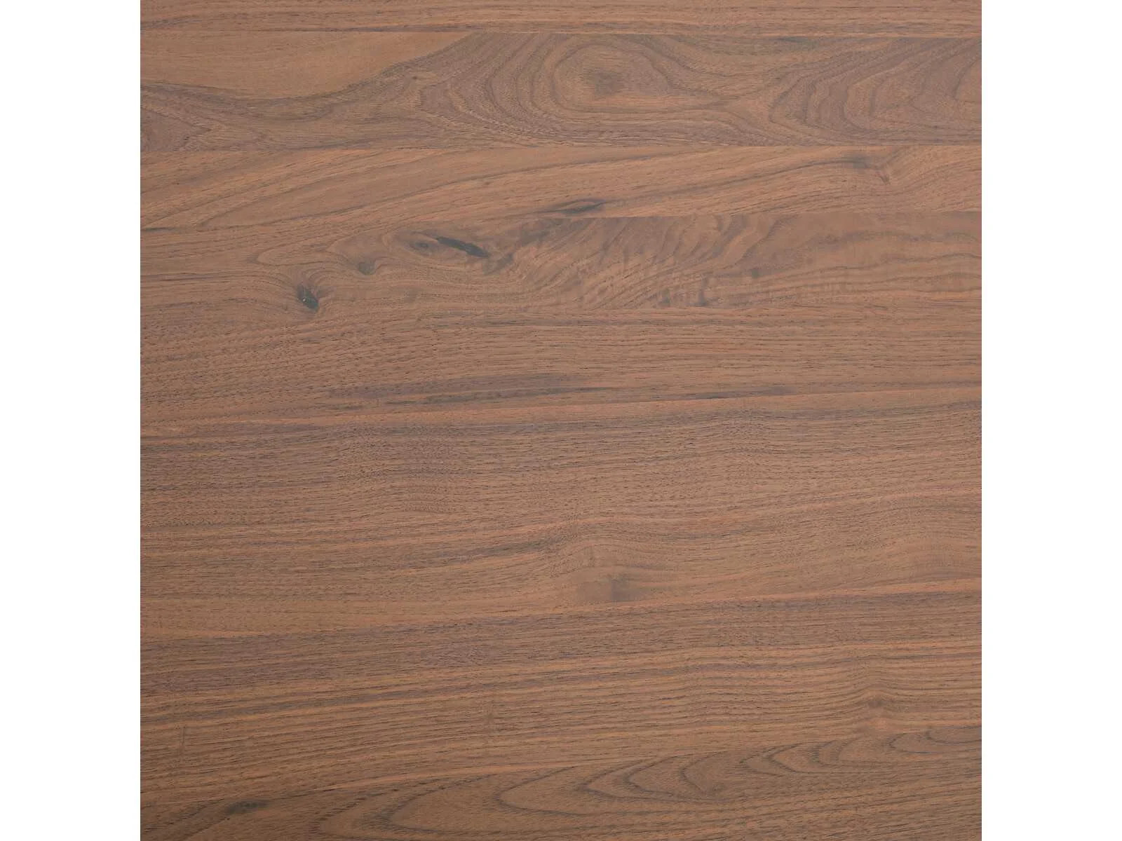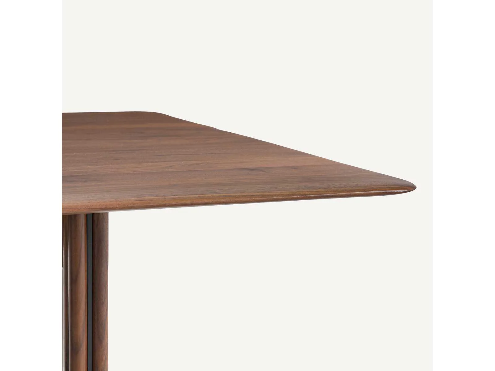 Beschrijving • FSC-gecertificeerd® massief walnoothouten blad, afgeschuinde randen als een vliegtuigvleugel, polyurethaan afwerking • Onderstel van walnootgefineerd staal en MDF bekleed met dunne massief® FSC-walnoothouten lamellen met polyurethaan afwerking • Voor 6 personen Kwaliteit • Hout is een levend materiaal. De verschillen in tinten, nerven en knoesten versterken het karakter en de authenticiteit. Na verloop van tijd kan het licht barsten. Het is een proces als gevolg van variaties in temperatuur en vochtigheid. Onderhoud • We raden aan om onderzetters en placemats te gebruiken en gemorste vloeistof onmiddellijk af te vegen. Grootte • Lengte: 220 cm • Hoogte: 75 cm • Breedte: 100 cm Non