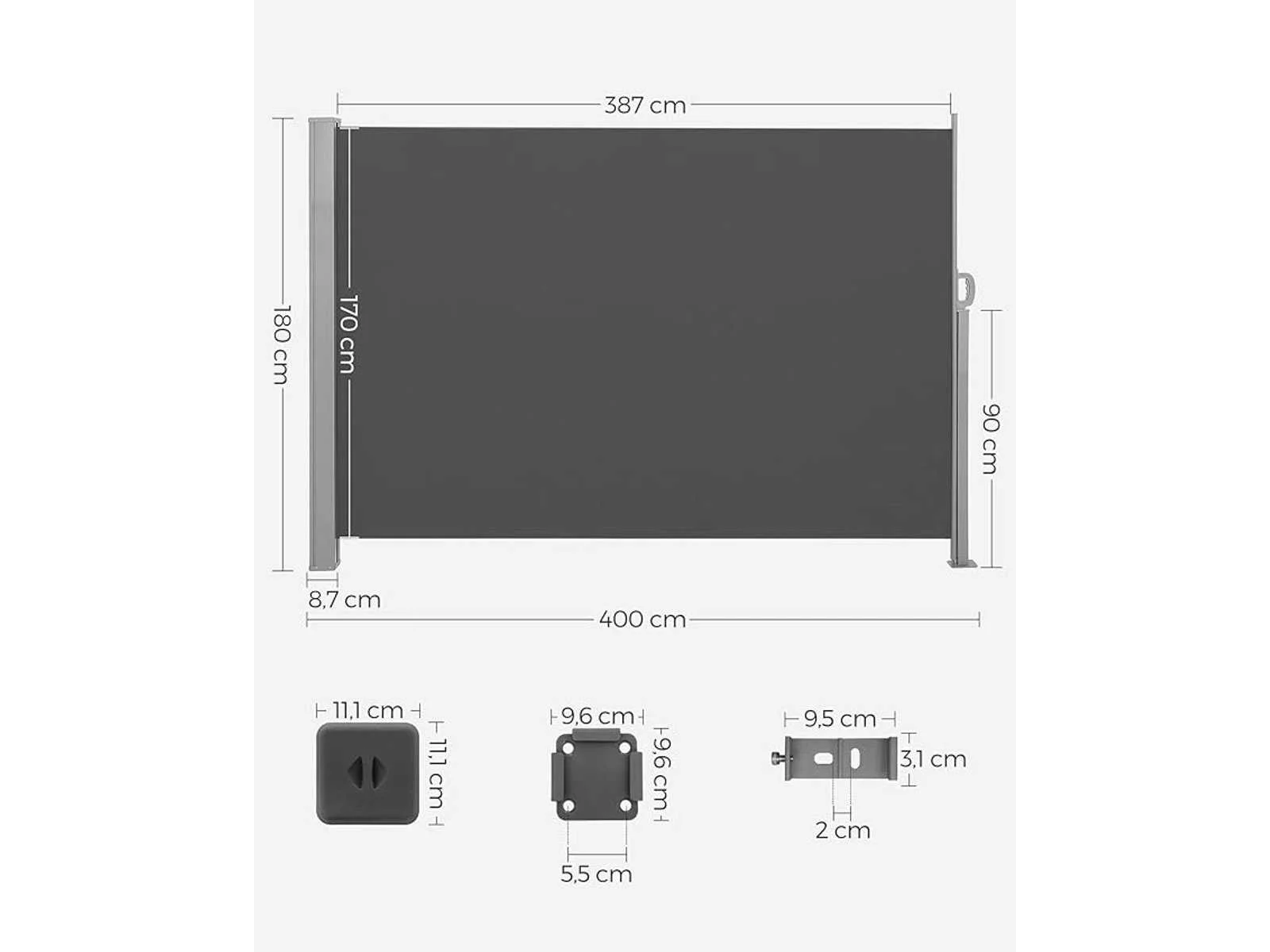 Zijluifel - scherm - intrekbaar zijrolgordijn 180 x 400