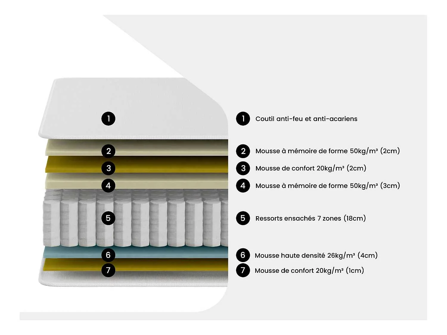 Kenmerken Ziel Technologie (kern): Pocketveren Aantal veren (matrassen): 584 Aantal zones: 7 zones Receptie Matrastechnologie (receptie): Traagschuim Dichtheid (ontvangst): 50 kg/m³ Receptie: Omhullend Afwerkingen Matras vulling: Polyester vezels Dichtheid (vulling): 120 gr/m² Tijk (materiaal): Polyester Omkeerbare zomer/winter, 4 draaggrepen Andere kenmerken Hybride matras Kleur (schaduw): Wit Zaak: 100% Polyester Grootte (slapen): 140 x 190 cm Aantal plaatsen: 2 zitplaatsen Steunen: Evenwichtig Slaap onafhankelijkheid: Behandeling: Anti-mijt, Anti vuur Bereik: Goed voor de planeet Garantie: 7 jaar is Milieuvriendelijk product: Gemaakt in Europa Gecomprimeerd/gerold: Ja Grootte Dikte traagschuim: 2 cm Lengte: 190 cm Hoogte: 30 cm Diepte: 140 cm Matras dikte: 30 cm Hoogte van de kern: 18 cm Non