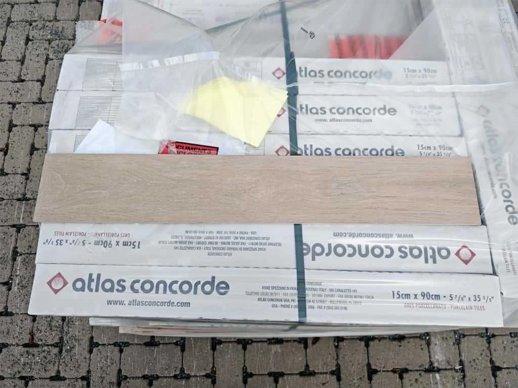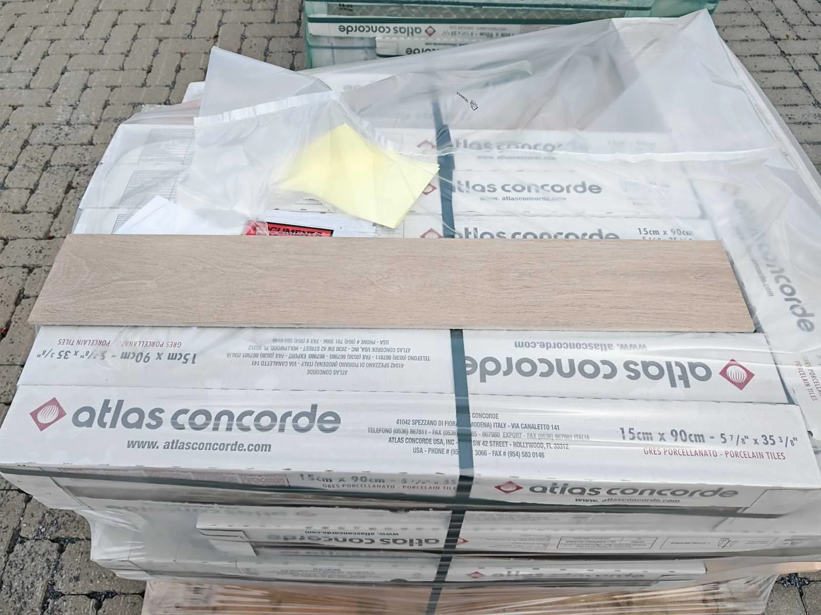 No Merk: Atlas Concorde Kleur: Cashmere Afwerking: Mat R10 Lengte: 150mm Breedte: 900mm Dikte: 9mm Materiaal: Keramiek Type: Vloertegel Model: Nid AAMB Aantal m² per verpakking: 1.215m² Aantal pakken: 80 Totaal oppervlakte: 97.2m² Totaal gewicht: 2000kg