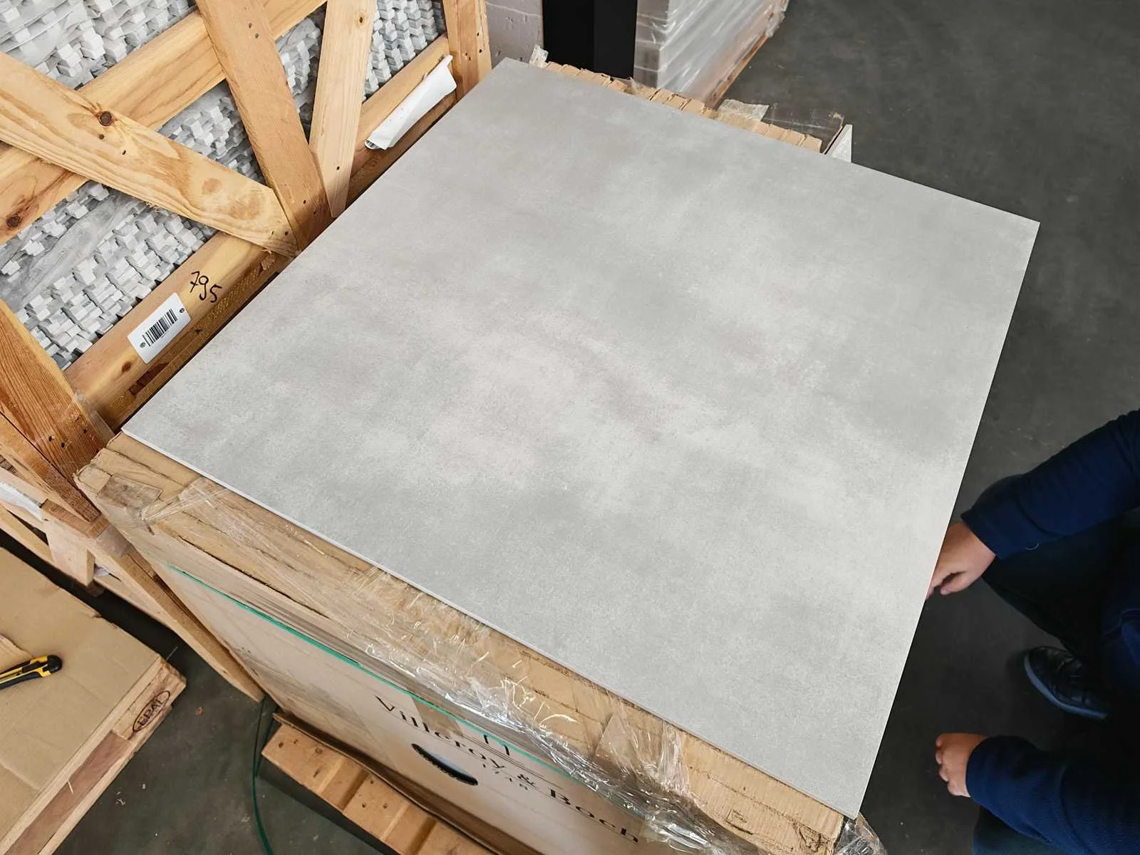 No Merk: Villeroy&Boch Kleur: Grijs Afwerking: Mat R9 Lengte: 800mm Breedte: 800mm Dikte: 9mm Materiaal: Keramiek Type: Vloertegel Model: Spotlight 2810 CM6M Aantal m² per verpakking: 1,28m² Aantal pakken: 23 Totaal oppervlakte: 29,44m² Totaal gewicht: 600kg