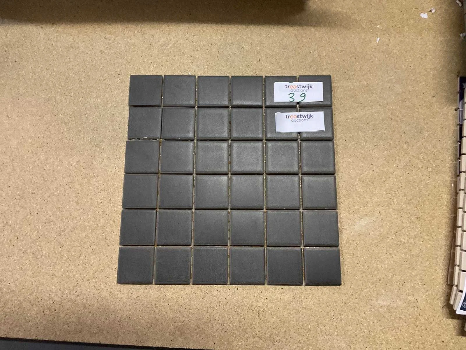 No Merk: Vitra Kleur: Zwart/Bruin Afwerking: Mat Lengte: 30cm Breedte: 30cm Materiaal: Keramiek Dikte: 8mm Type: Wandtegel Model: Felino 5x5 cm Aantal m² per verpakking: 1m² Aantal pakken: 10 Totaal oppervlakte: 10m² Totaal gewicht: 200g