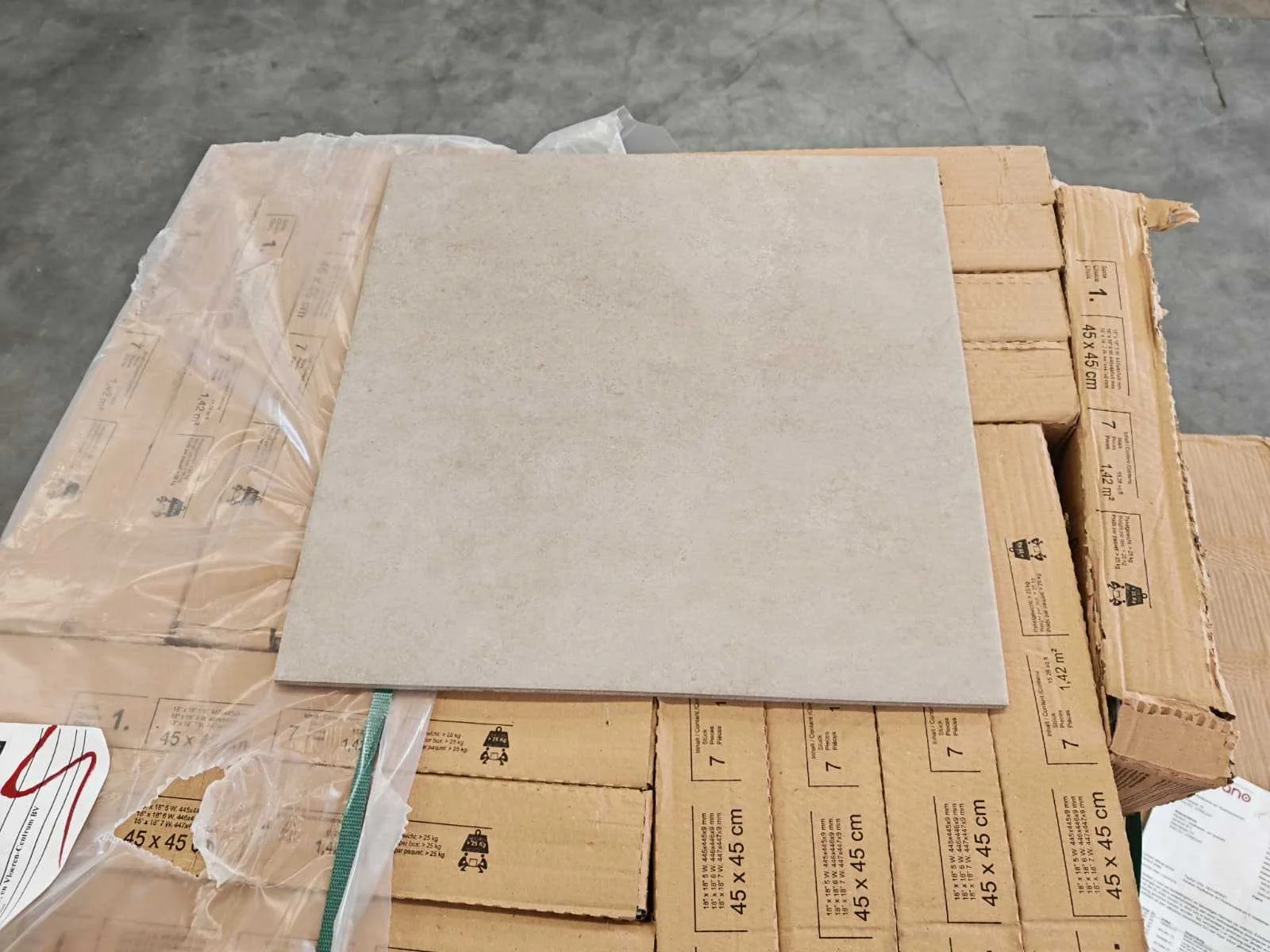 Nee Merk: Villeroy&Boch Kleur: Beige Afwerking: Mat R9 Lengte: 450mm Breedte: 450mm Dikte: 9mm Materiaal: Keramiek Type: Vloertegel Model: Ohio 2733 CJ20 Aantal m² per verpakking: 1.42m² Aantal pakken: 17 Totaal oppervlakte: 24.09m² Totaal gewicht: 490kg