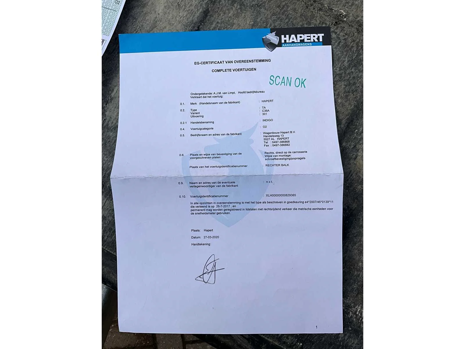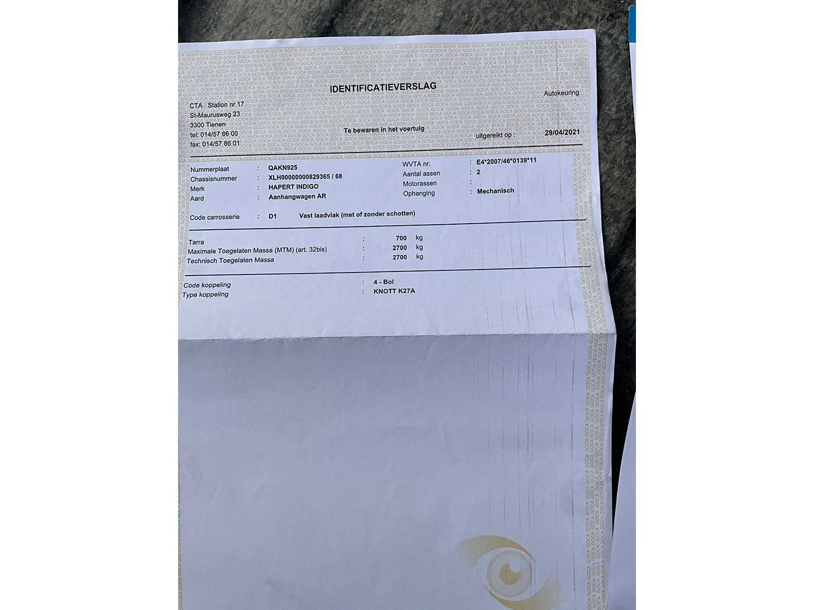 Nette aanhangwagen - Recent gekeurd - 4 Nieuwe banden - volledig inorde Nee Merk: Hapert Type: Machinetransport Model: C36A Bouwjaar: 2020 Aantal assen: 2 Laadbak afmeting l: 300cm Laadbak afmeting b: 145cm Ledig gewicht: 700kg Laadvermogen: 2700kg