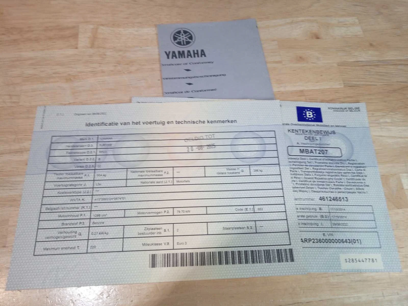 Inschrijvingsbewijs deel 1 en 2 aanwezig, gelijkvormigheidsattest aanwezig kilometerstand niet afleesbaar Nee Merk: yamaha Model: fjr 1300 AS Brandstof: benzine Chassisnummer: JYARP236000000643 Cilinderinhoud: 1300cc Datum eerste toelating: 17/10/2014 Vermogen (kW): 79kW Aantal sleutels: 3 Boorddocumenten aanwezig?: true Startinformatie: Start niet, accu leeg Bouwjaar: 2014