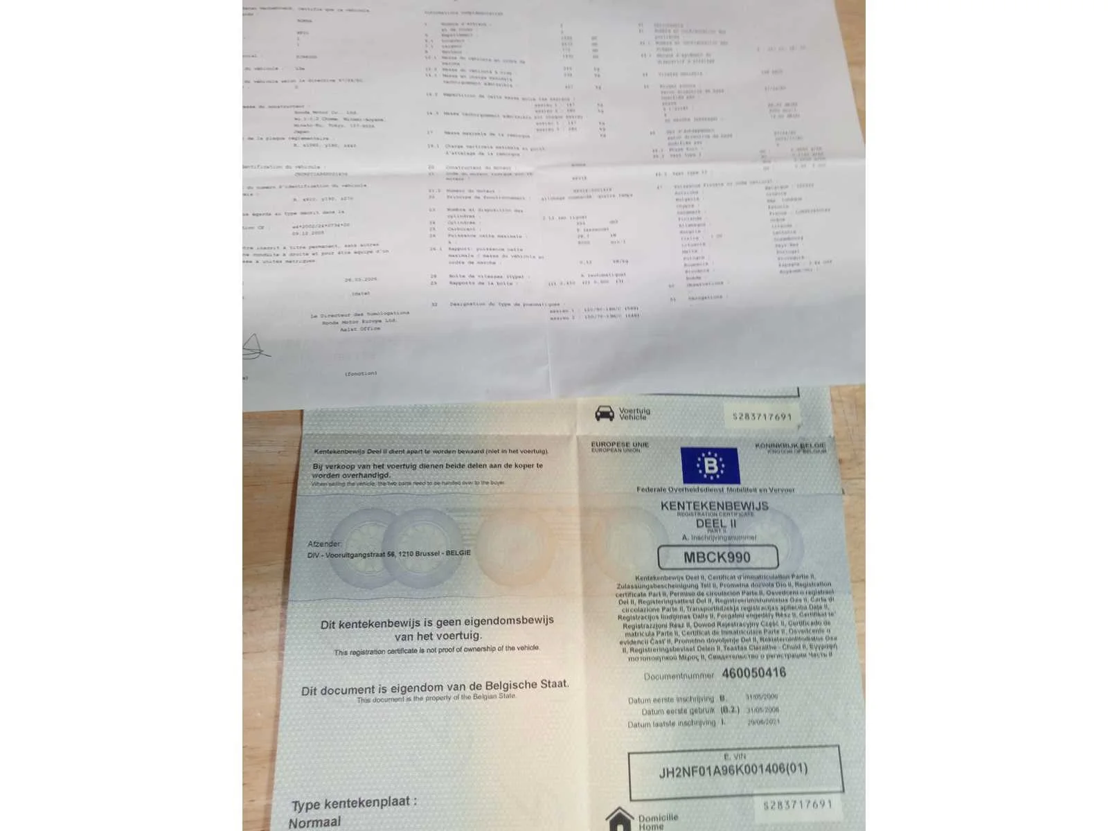 Inschrijvingsbewijs aanwezig, gelijkvormigheidsattest aanwezig. Nee Merk: Honda Model: Silverwing 400 Brandstof: benzine Cilinderinhoud: 400cc Vermogen (kW): 29kW Afgelezen kilometerstand: 33600km Datum eerste toelating (NL): 31/05/2006 Aantal sleutels: 1 Boorddocumenten aanwezig?: true Startinformatie: ja Bouwjaar: 2006