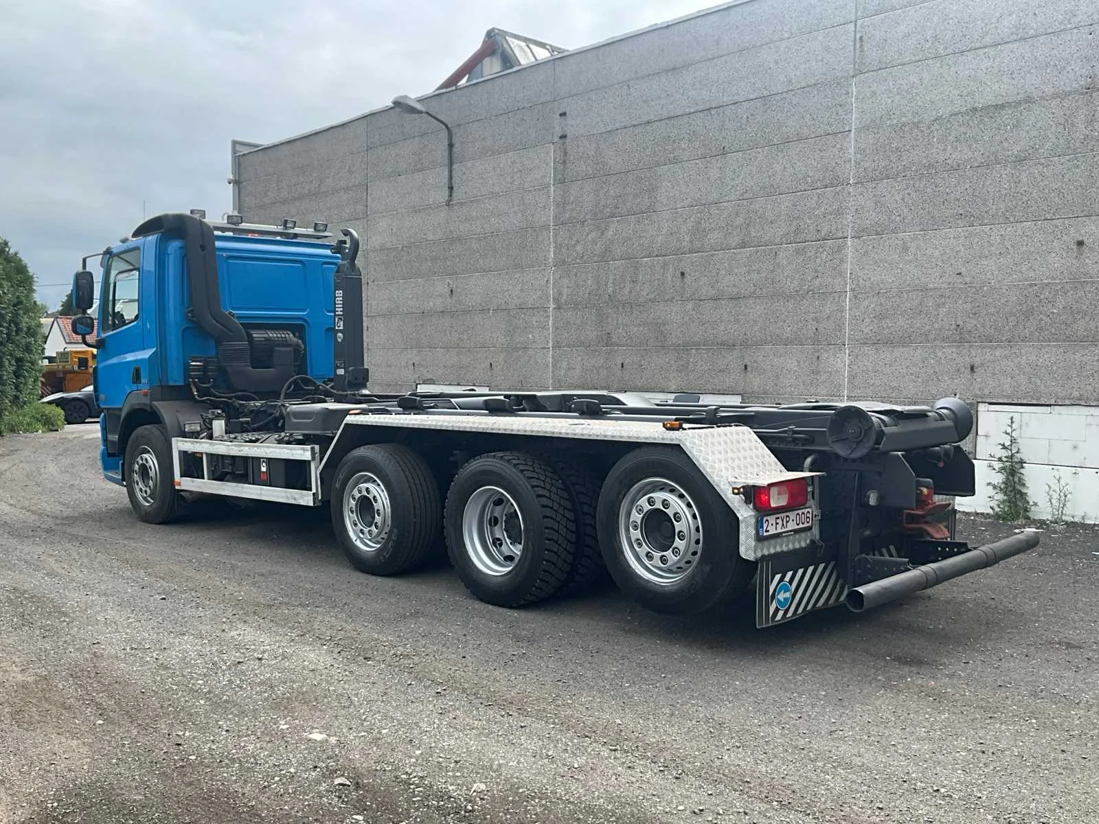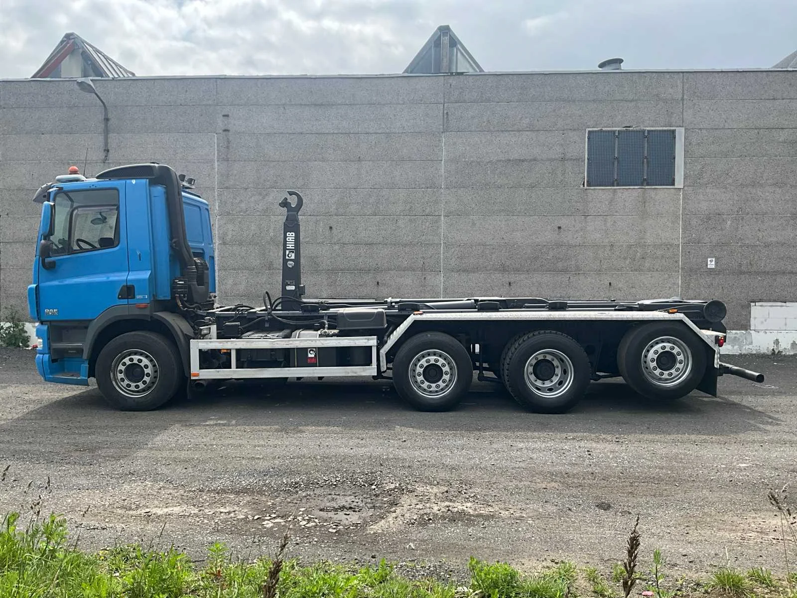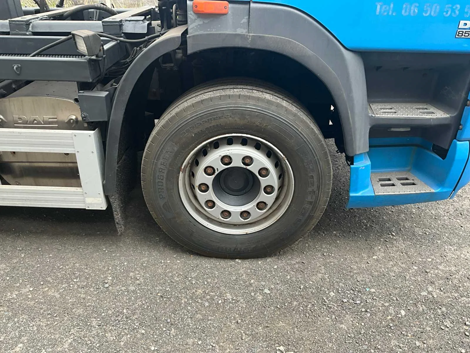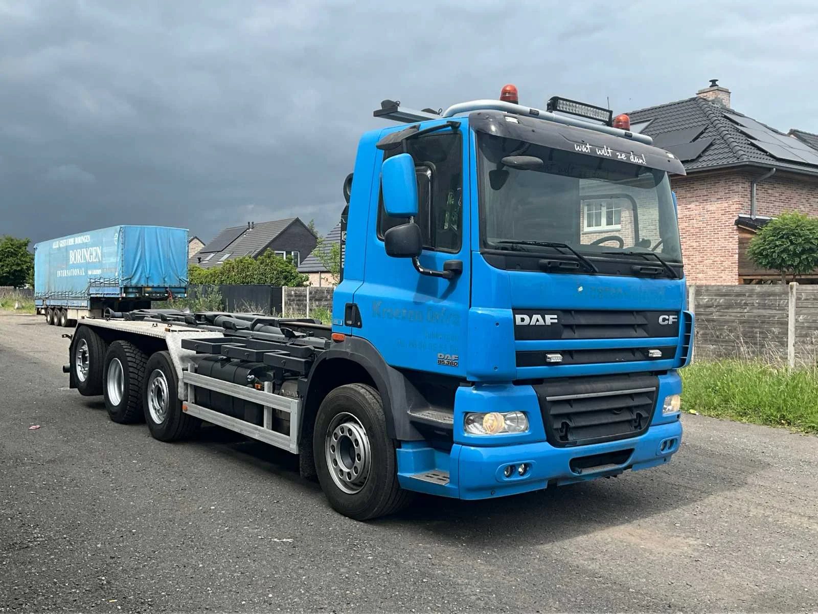 DAF CF 85.360 vrachtwagen met werkend containersysteem van het bouwjaar 2013. De vrachtwagen start, remt en rijdt. Documenten aanwezig, zie foto’s voor meer details. Voorzien van nieuwe banden en groot onderhoud. Voorste en achterste as zijn stuurassen. Ruimte voorzien om kraan op te plaatsen. Nee Merk: DAF Type: CF 85.360 Bouwjaar: 2013 Chassisnummer VIN: XLRAK85MC0E977378 Cilinderinhoud: 12900cc Kilometerstand bij opname: 196767km Datum eerste toelating: 16/04/2013 Aantal assen: 3 Aantal sleutels: 1 Totale afmeting L: 9100mm Totale afmeting Breedte: 2550mm Afgelezen kilometerstand: 196767km Nationaliteit documenten: Nederland Kentekenpapieren compleet?: true Aantal zitplaatsen: 2 Automaat: true Diesel: true