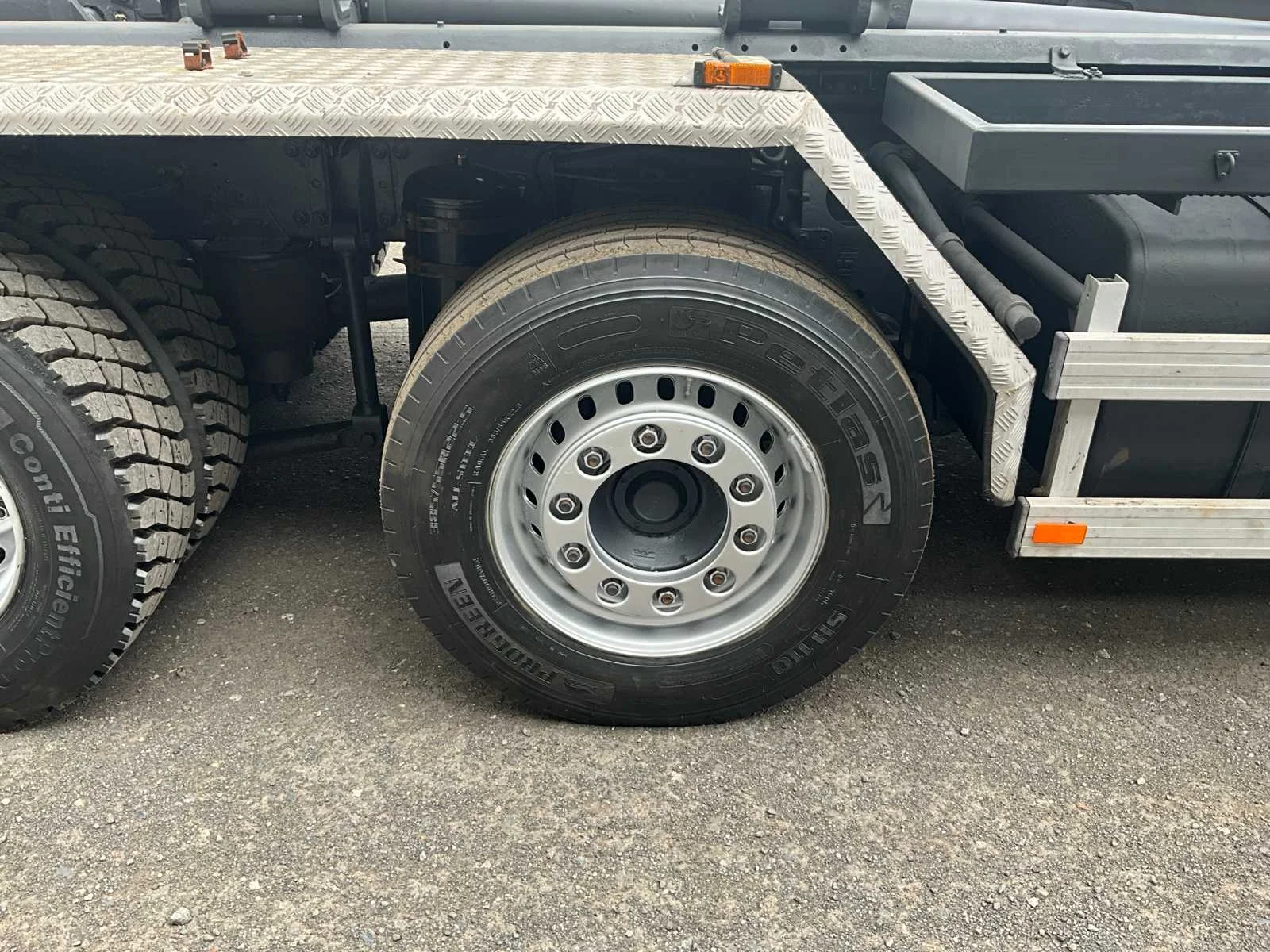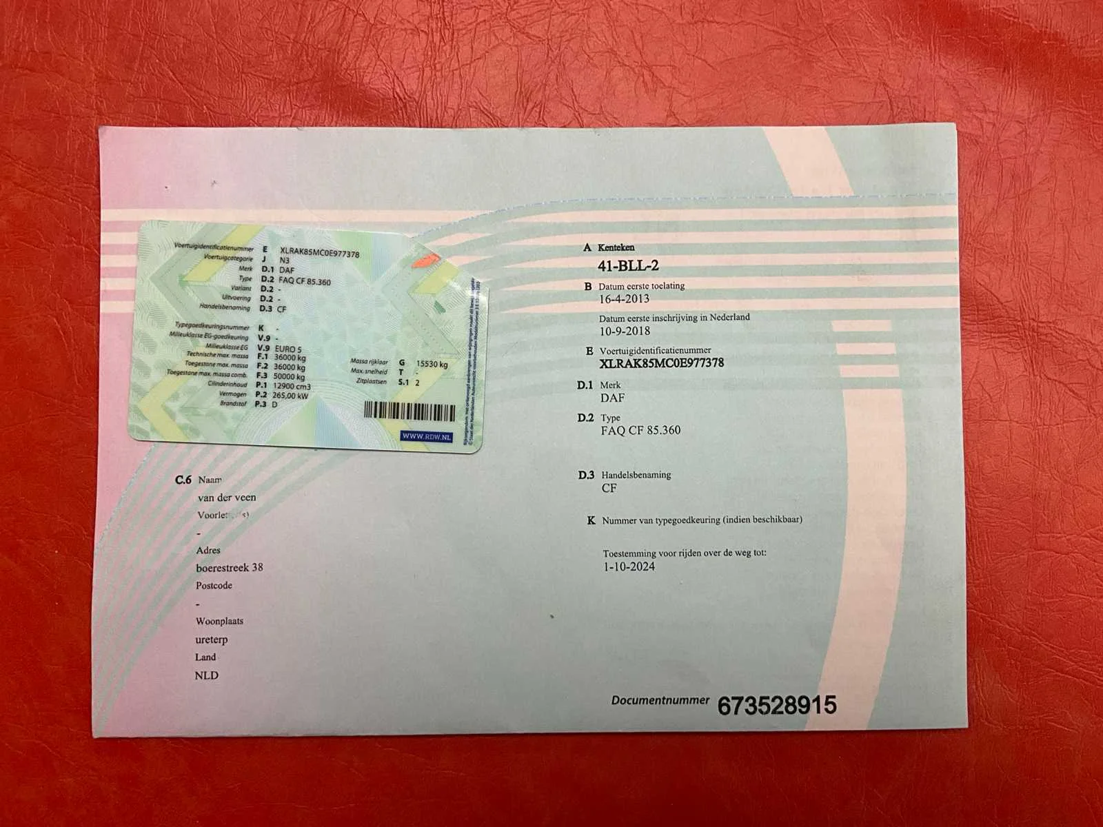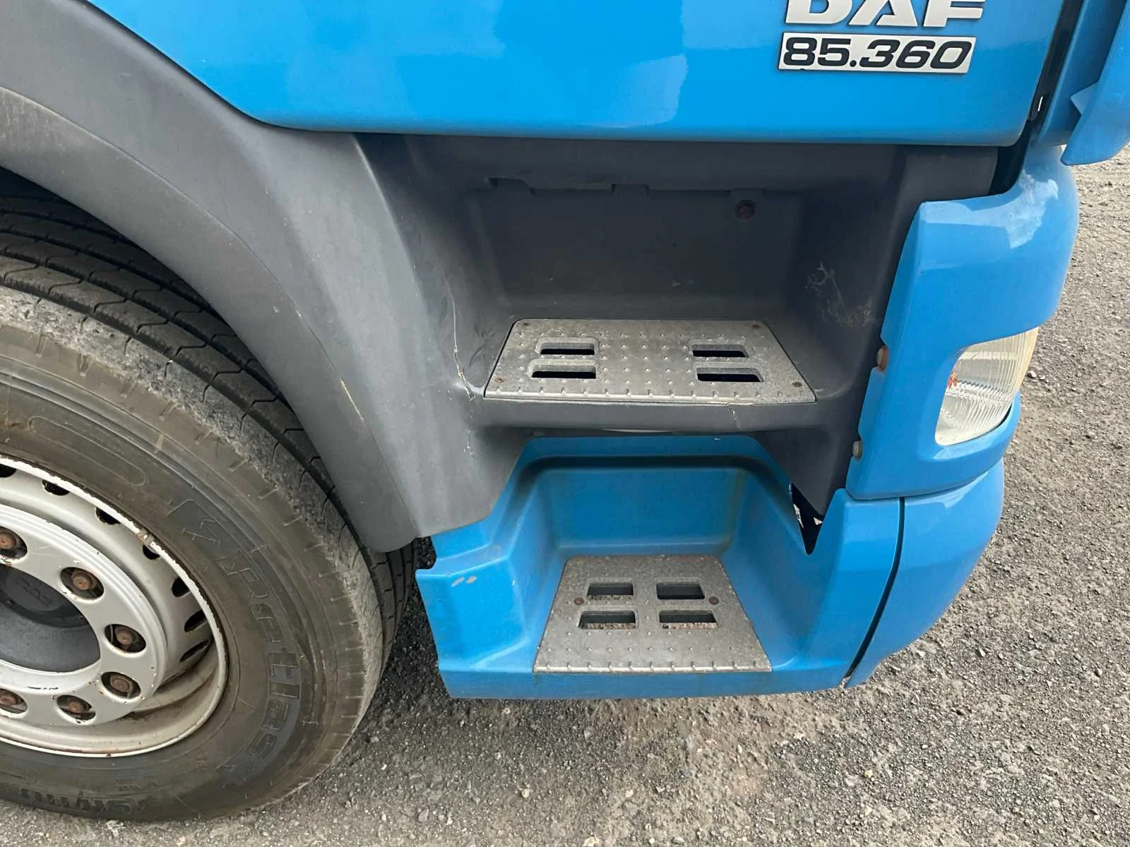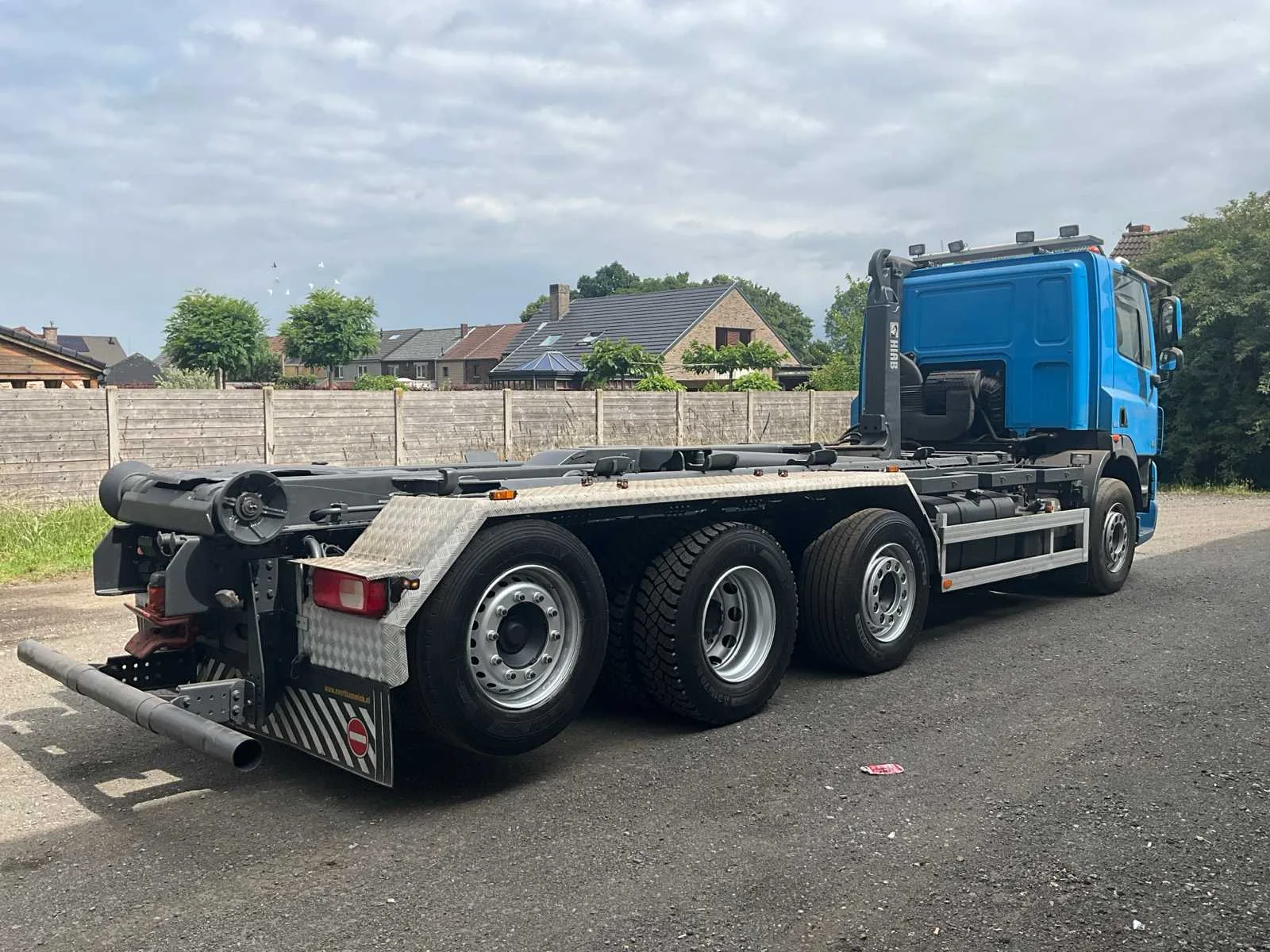 DAF CF 85.360 vrachtwagen met werkend containersysteem van het bouwjaar 2013. De vrachtwagen start, remt en rijdt. Documenten aanwezig, zie foto’s voor meer details. Voorzien van nieuwe banden en groot onderhoud. Voorste en achterste as zijn stuurassen. Ruimte voorzien om kraan op te plaatsen. Nee Merk: DAF Type: CF 85.360 Bouwjaar: 2013 Chassisnummer VIN: XLRAK85MC0E977378 Cilinderinhoud: 12900cc Kilometerstand bij opname: 196767km Datum eerste toelating: 16/04/2013 Aantal assen: 3 Aantal sleutels: 1 Totale afmeting L: 9100mm Totale afmeting Breedte: 2550mm Afgelezen kilometerstand: 196767km Nationaliteit documenten: Nederland Kentekenpapieren compleet?: true Aantal zitplaatsen: 2 Automaat: true Diesel: true
