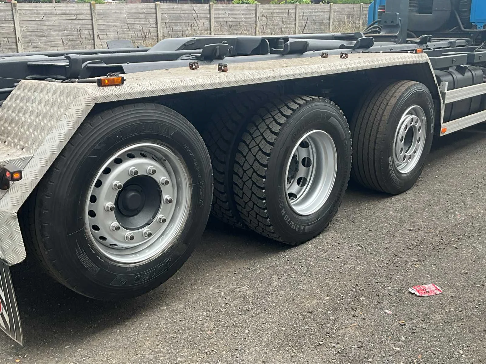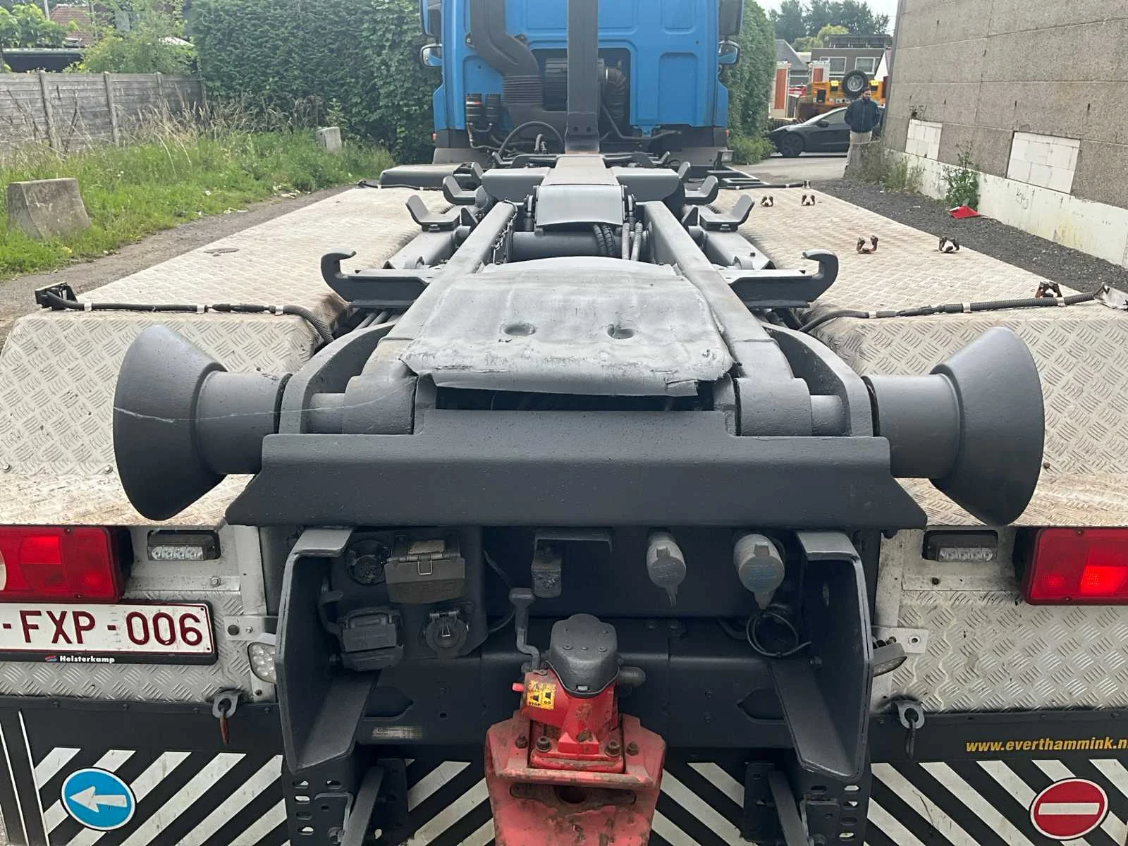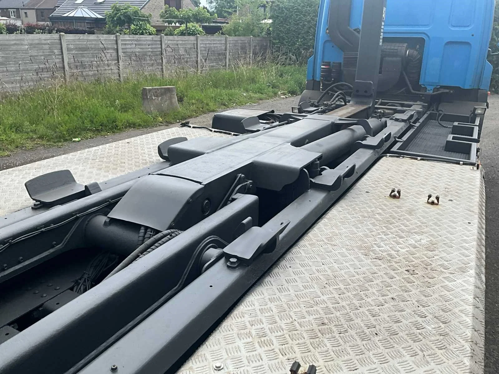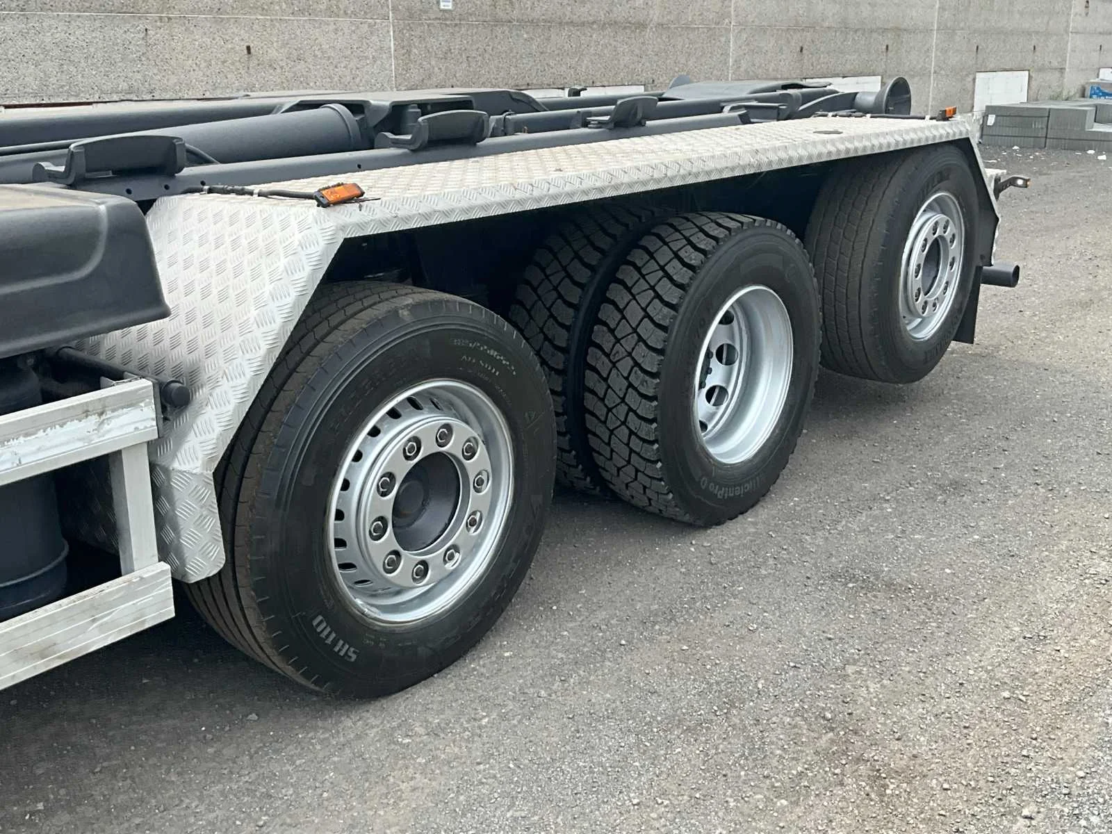 DAF CF 85.360 vrachtwagen met werkend containersysteem van het bouwjaar 2013. De vrachtwagen start, remt en rijdt. Documenten aanwezig, zie foto’s voor meer details. Voorzien van nieuwe banden en groot onderhoud. Voorste en achterste as zijn stuurassen. Ruimte voorzien om kraan op te plaatsen. Nee Merk: DAF Type: CF 85.360 Bouwjaar: 2013 Chassisnummer VIN: XLRAK85MC0E977378 Cilinderinhoud: 12900cc Kilometerstand bij opname: 196767km Datum eerste toelating: 16/04/2013 Aantal assen: 3 Aantal sleutels: 1 Totale afmeting L: 9100mm Totale afmeting Breedte: 2550mm Afgelezen kilometerstand: 196767km Nationaliteit documenten: Nederland Kentekenpapieren compleet?: true Aantal zitplaatsen: 2 Automaat: true Diesel: true
