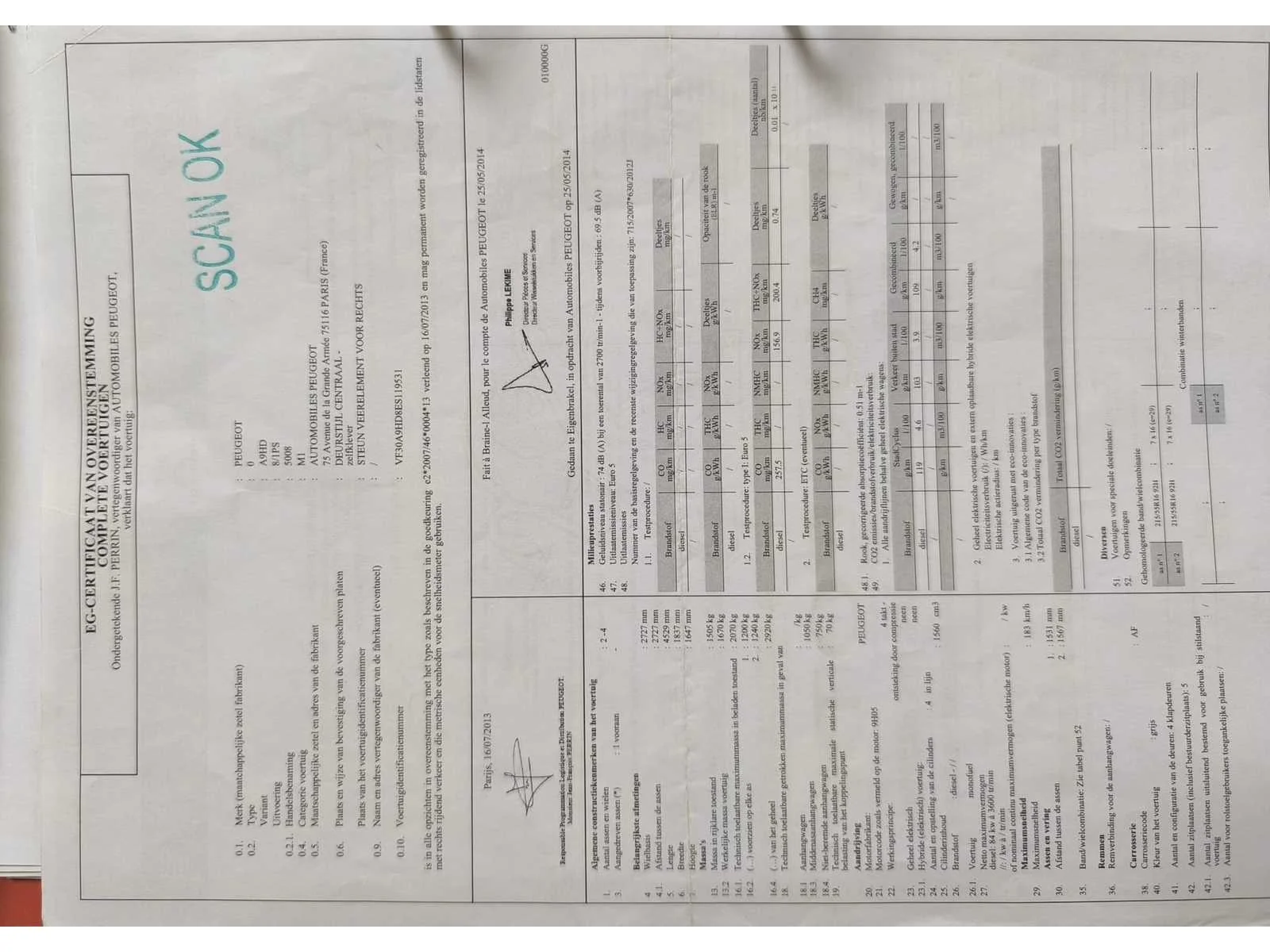 Peugeot 5008 van het bouwjaar 2014. De wagen start en rijdt zonder problemen. Documenten aanwezig, zie foto’s voor verdere details. Nee Merk: Peugeot Model: 5008 Bouwjaar: 2014 Afgelezen kilometerstand: 186457km Cilinderinhoud: 1560cc Vermogen (kW): 84kW Brandstof: diesel Chassisnummer: VF30A9HD8ES11953 Datum eerste toelating: 16/08/2014 Aantal zitplaatsen: 5 Kleur: Grijs Transmissie: Automaat Emissieklasse: Euro 5b Aantal deuren: 5 Nationaliteit documenten: België Start en rijdt: Ja Vavato voert geen technische keuring uit.: true Inschrijvingsbewijs - deel 1 : Aanwezig Inschrijvingsbewijs - deel 2: Aanwezig