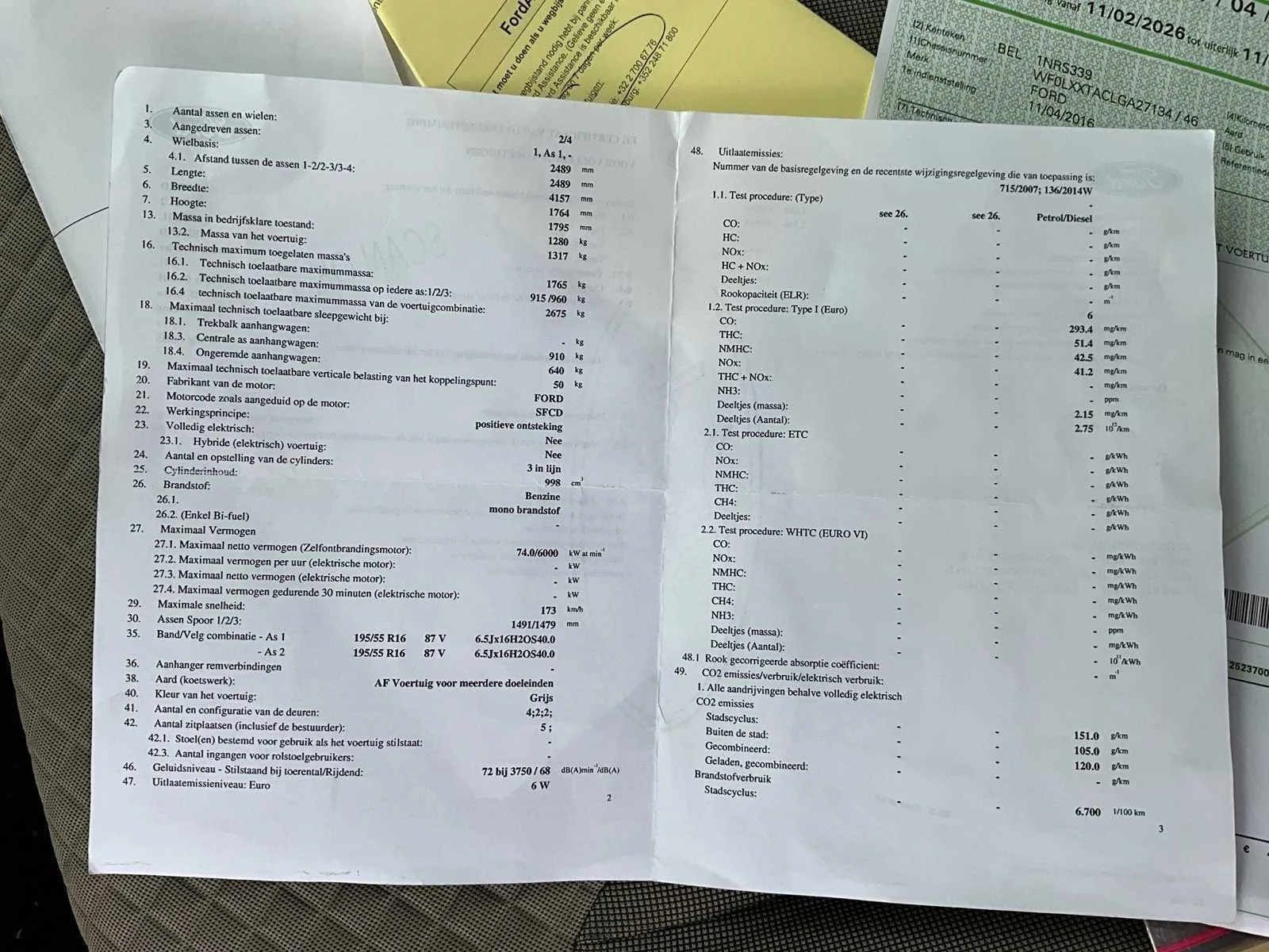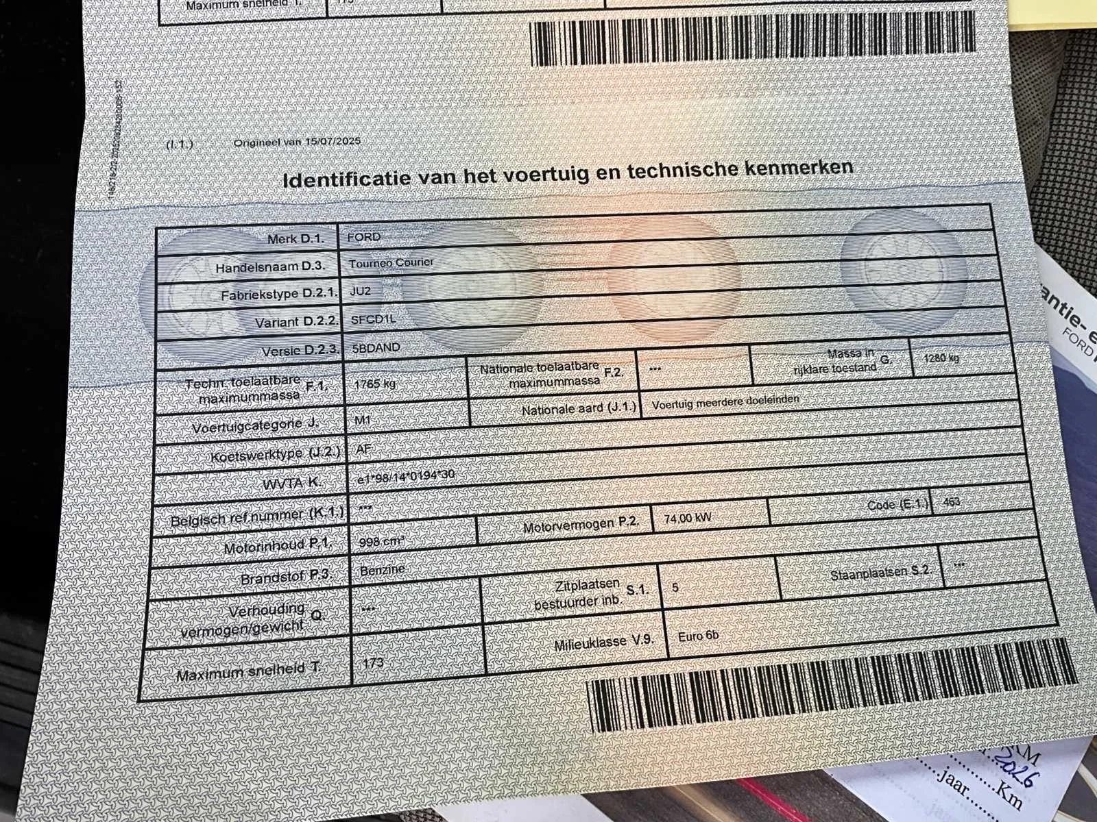 Nieuwe distributieriem. No Merk: Ford Model: Tourneo connect Bouwjaar: 2016 Afgelezen kilometerstand: 96108km Cilinderinhoud: 998cc Vermogen (kW): 74kW Brandstof: Benzine Chassisnummer: WF0LXXTACLGA27134 Datum eerste toelating: 11/04/2016 Nationaliteit documenten: Belgisch Start en rijdt: Ja startinformatie : Start en rijdt Inschrijvingsbewijs - deel 1 : Aanwezig Inschrijvingsbewijs - deel 2: Aanwezig
