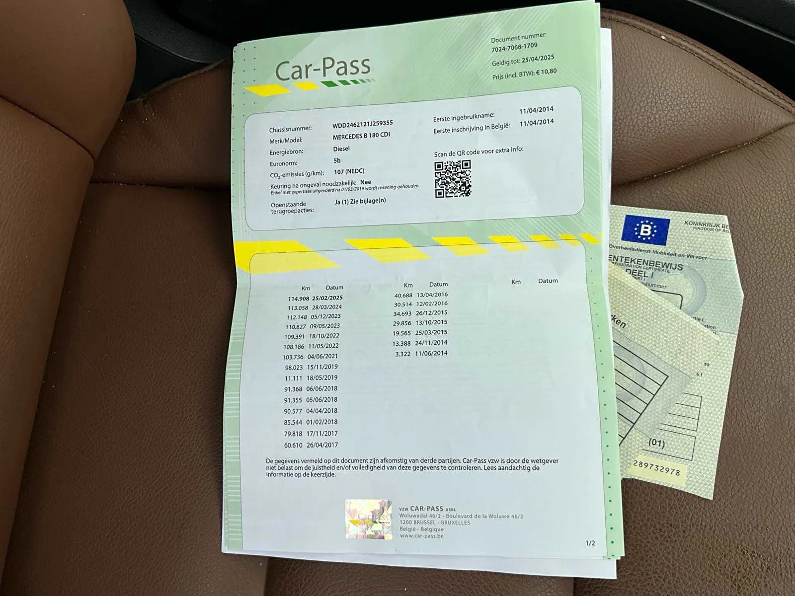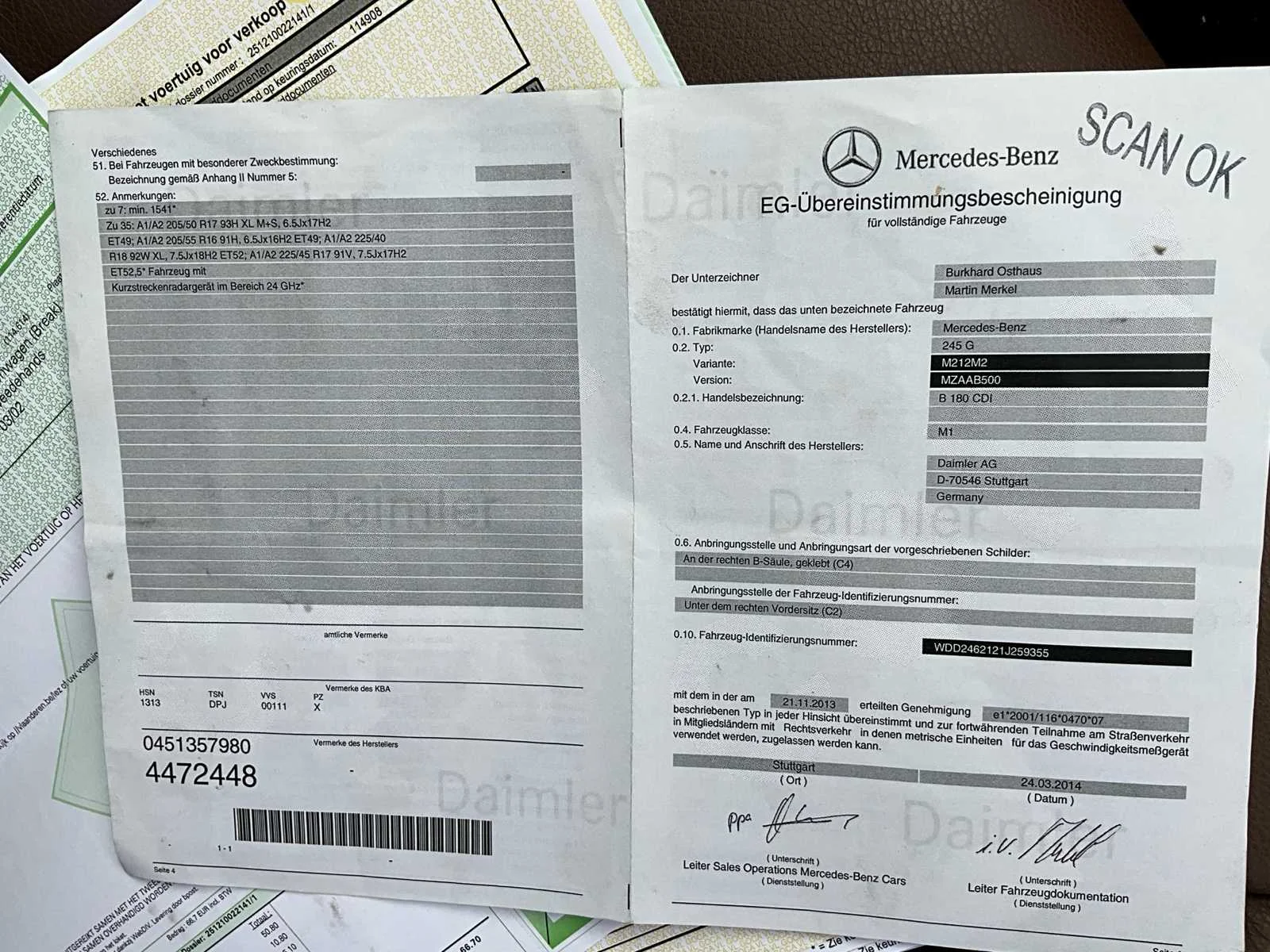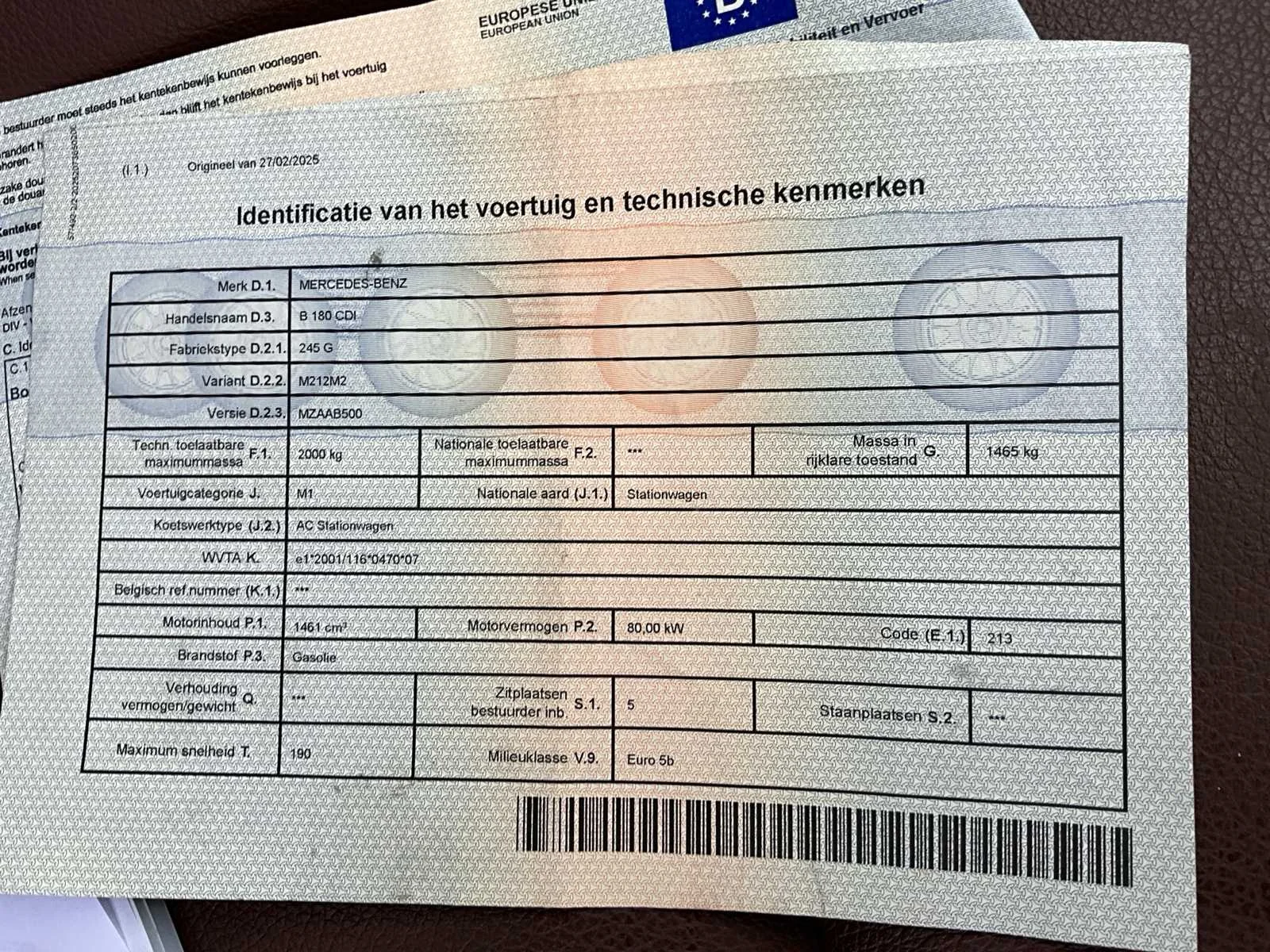 No Merk: Mercedes-benz Model: B Bouwjaar: 2014 Afgelezen kilometerstand: 114638km Cilinderinhoud: 1461cc Vermogen (kW): 80kW Brandstof: Diesel Datum eerste toelating: 11/04/2014 Transmissie: Automaat Nationaliteit documenten: Belgisch Start en rijdt: Ja Inschrijvingsbewijs - deel 1 : Aanwezig Inschrijvingsbewijs - deel 2: Aanwezig