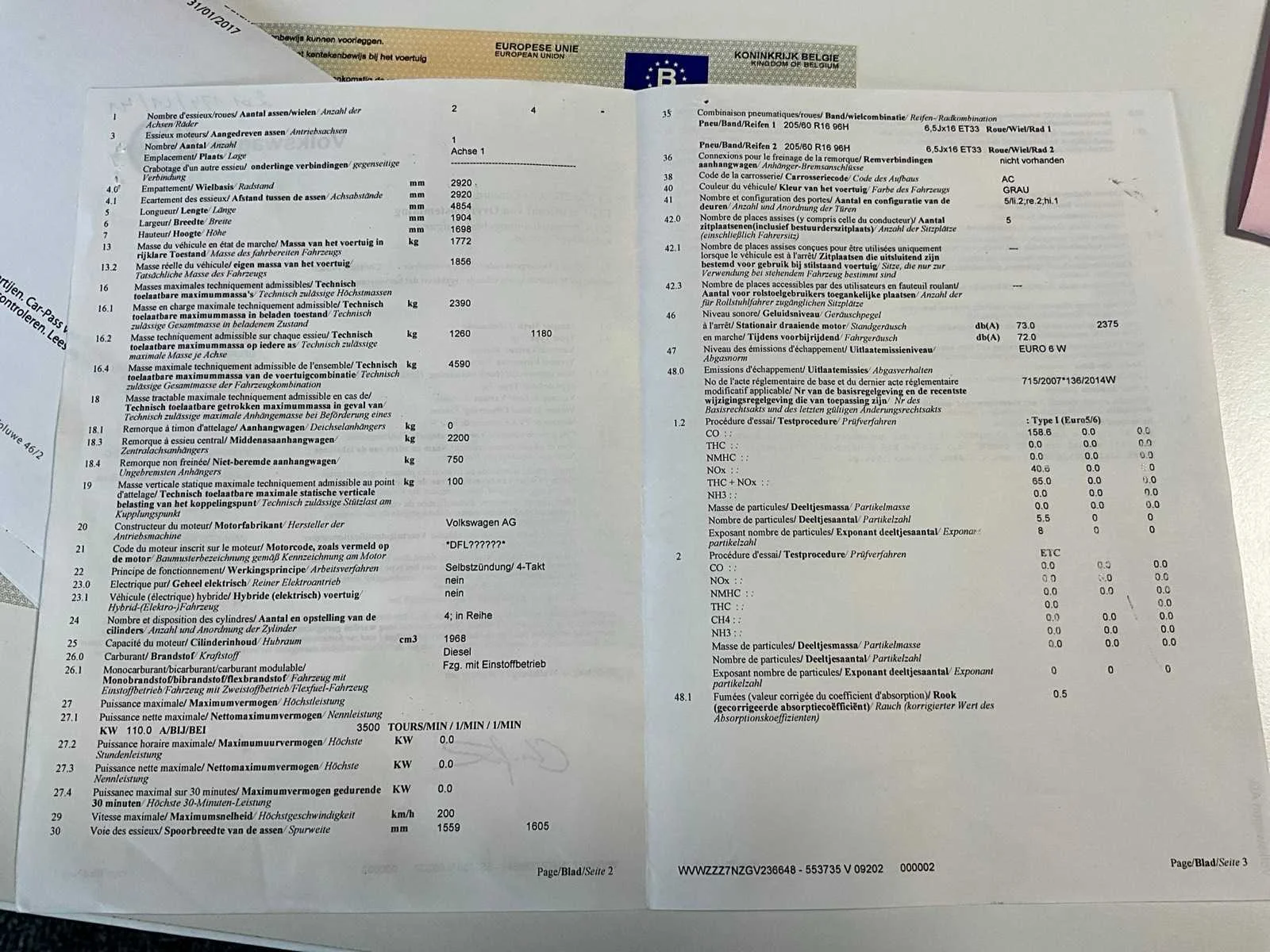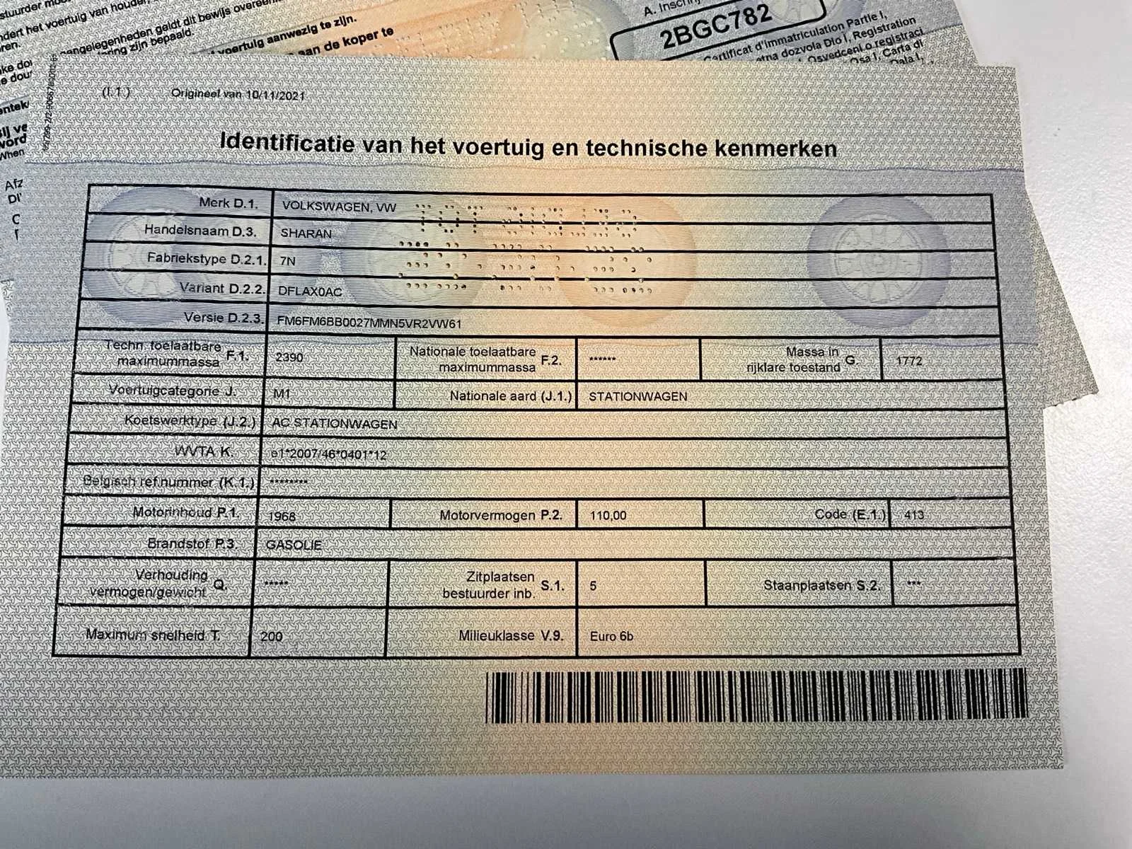 De wagen start,rijdt en draait soepel. Nee Merk: Volkswagen Model: Sharan Bouwjaar: 2016 Afgelezen kilometerstand: 127273km Cilinderinhoud: 1968cc Vermogen (kW): 110kW Brandstof: diesel Chassisnummer: WVWZZZ7NZGV236648 Datum eerste toelating: 19/04/2016 Aantal sleutels: 2 Nationaliteit documenten: Belgisch Start en rijdt: Ja startinformatie : Start en rijdt Inschrijvingsbewijs - deel 1 : Aanwezig Inschrijvingsbewijs - deel 2: Aanwezig