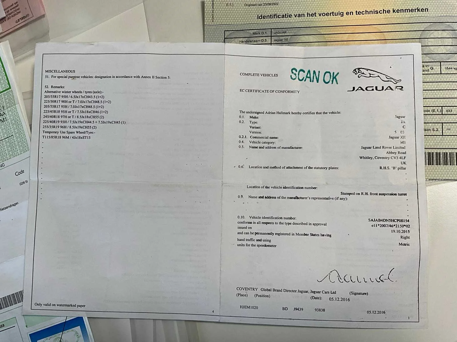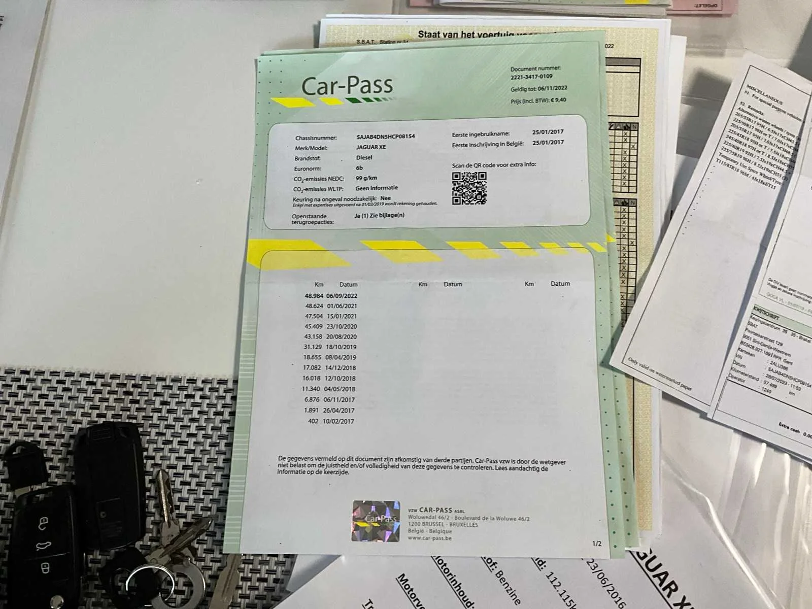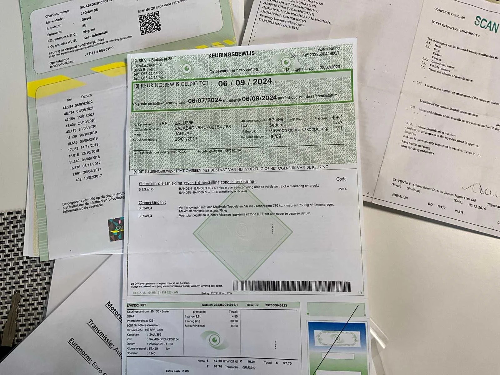De wagen start,rijdt en draait soepel. Nee Merk: Jaguar Model: XE Bouwjaar: 2017 Afgelezen kilometerstand: 59003km Cilinderinhoud: 1999cc Vermogen (kW): 120kW Brandstof: benzine Chassisnummer: SAJAB4BG7GA939846 Chassisnummer niet afleesbaar: true Datum eerste toelating: 25/01/2017 Aantal sleutels: 2 Nationaliteit documenten: Belgisch Start en rijdt: Ja startinformatie : Start en rijdt Inschrijvingsbewijs - deel 1 : Aanwezig Inschrijvingsbewijs - deel 2: Aanwezig