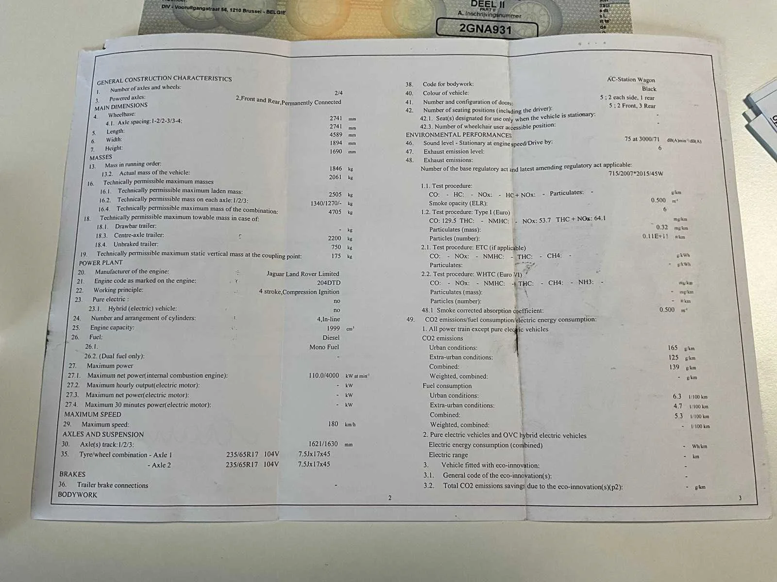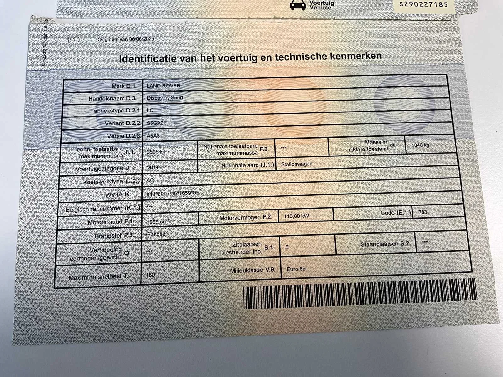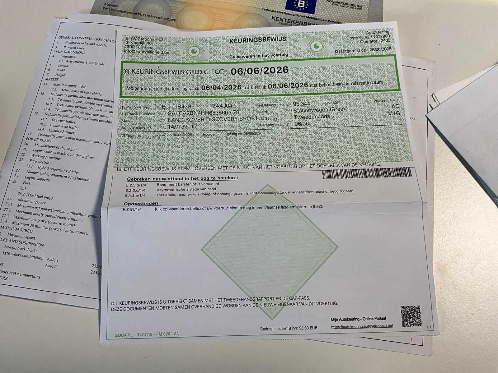 De wagen werd volledig in orde gezet (zie factuur). De wagen start,rijdt en draait soepel. Nee Merk: Land Rover Model: Discovery sport Bouwjaar: 2017 Afgelezen kilometerstand: 99716km Cilinderinhoud: 1999cc Vermogen (kW): 110kW Brandstof: diesel Chassisnummer: SALCA2BN4HH683566 Datum eerste toelating: 14/11/2017 Transmissie: Automaat Nationaliteit documenten: Belgisch Start en rijdt: Ja startinformatie : Start en rijdt Inschrijvingsbewijs - deel 1 : Aanwezig Inschrijvingsbewijs - deel 2: Aanwezig
