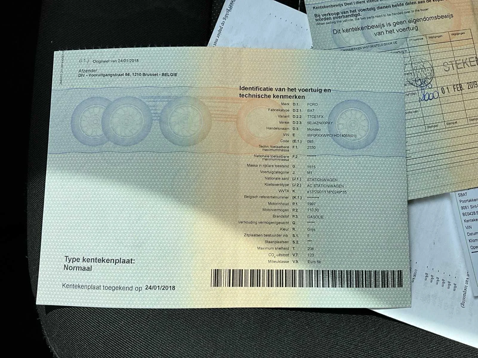 Nee Merk: Ford Model: Mondeo Bouwjaar: 2018 Afgelezen kilometerstand: 242399km Cilinderinhoud: 1997cc Vermogen (kW): 110kW Brandstof: diesel Chassisnummer: WF0FXXWPCCFHD14068 Datum eerste toelating: 24/01/2018 Transmissie: Automaat Nationaliteit documenten: Belgisch Start en rijdt: Ja startinformatie : Start en rijdt Inschrijvingsbewijs - deel 1 : Aanwezig Inschrijvingsbewijs - deel 2: Aanwezig