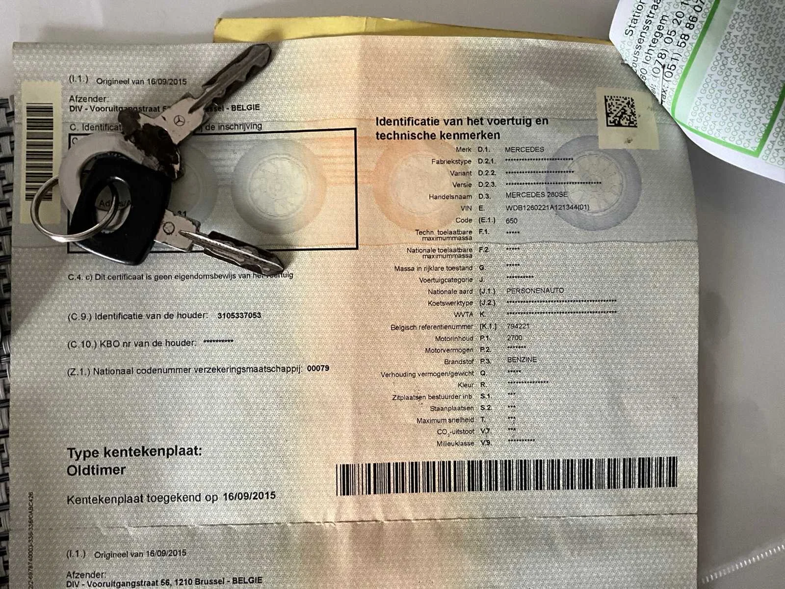 In werkende staat. Nee Merk: Mercedes Type: 280SE Bouwjaar: 1984 Afgelezen kilometerstand: 162538 Brandstof: Benzine Datum eerste inschrijving: 30/12/1984 Aantal sleutels: 2 Startinformatie: Start met booster Cilinderinhoud: 2700 Inschrijvingsbewijs - deel 1 : Aanwezig Inschrijvingsbewijs - deel 2: Aanwezig