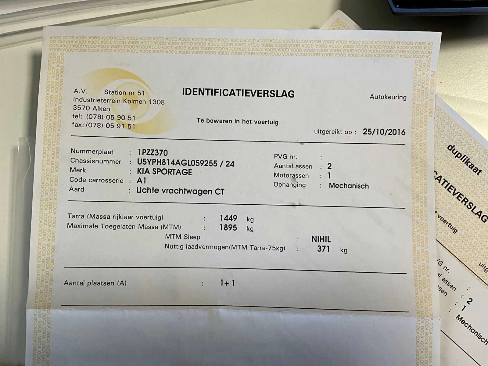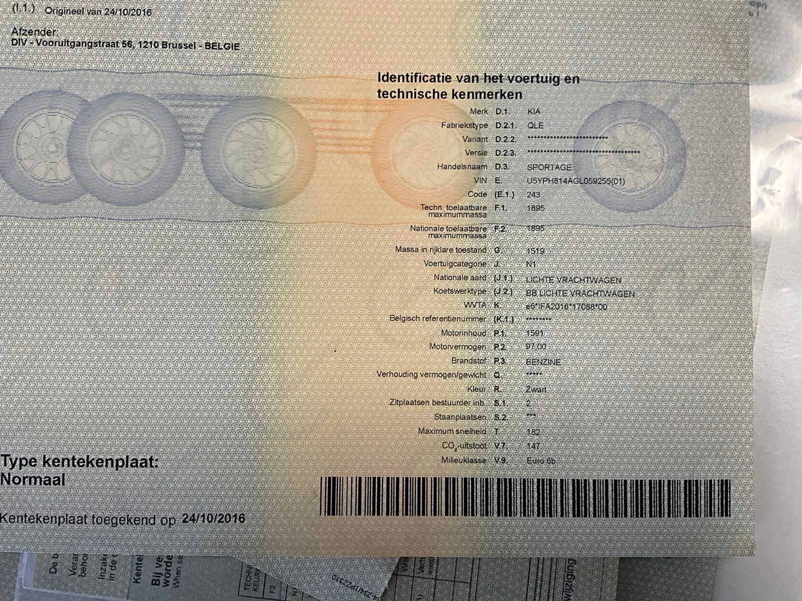 Nee Merk: Kia Model: Sportage Bouwjaar: 2016 Afgelezen kilometerstand: 83952km Cilinderinhoud: 1591cc Vermogen (kW): 97kW Chassisnummer: U5YPH814AGL059255 Datum eerste toelating: 24/10/2016 Transmissie: Handgeschakeld Aantal sleutels: 2 Nationaliteit documenten: Belgisch Start en rijdt: Ja startinformatie : Start en rijdt Inschrijvingsbewijs - deel 1 : Aanwezig Inschrijvingsbewijs - deel 2: Aanwezig
