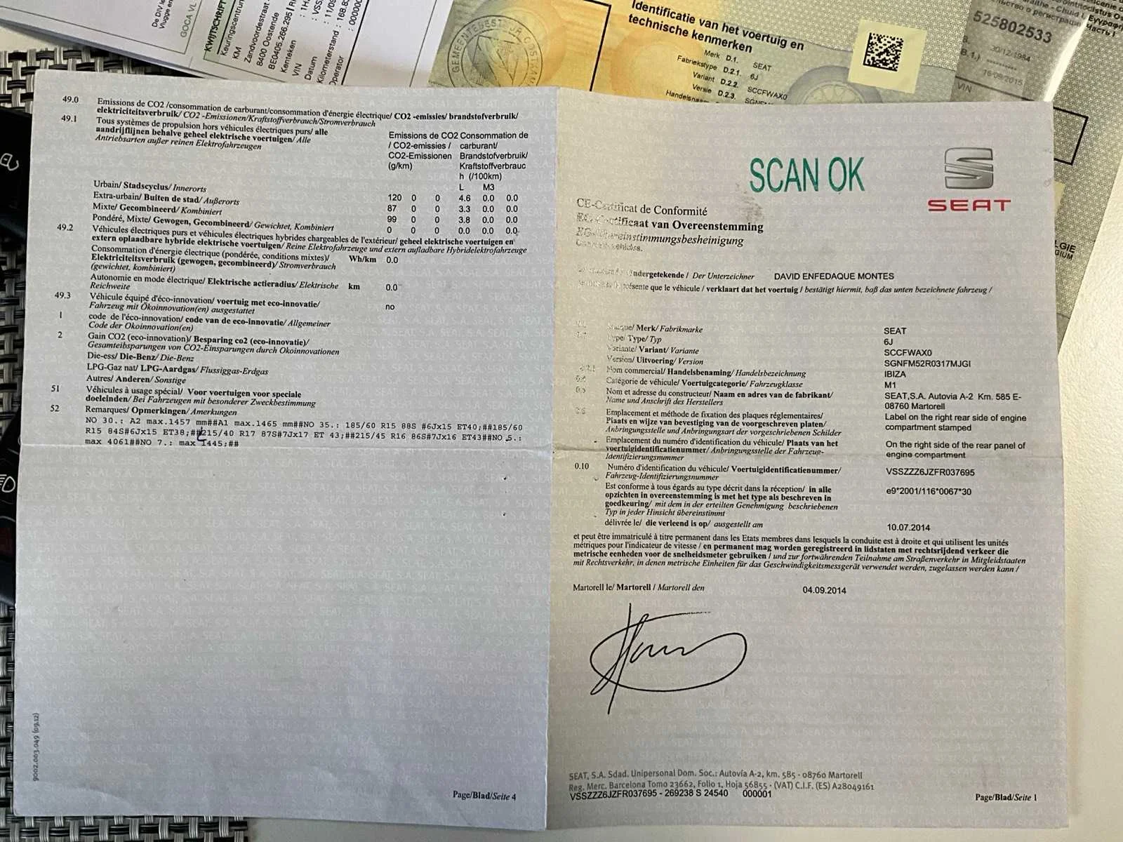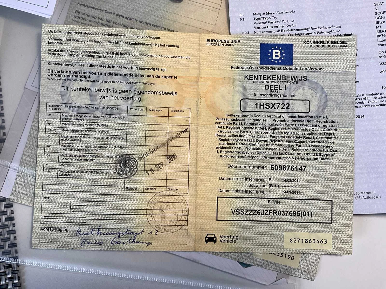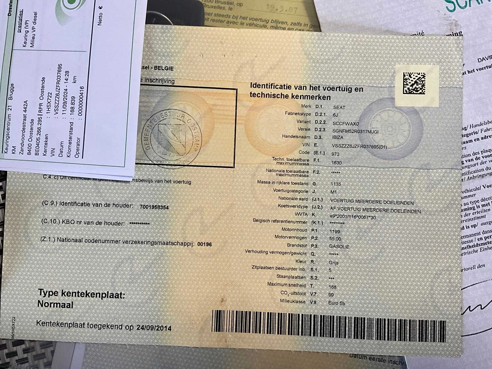 Nee Merk: Seat Model: Ibiza Bouwjaar: 2014 Afgelezen kilometerstand: 185823km Cilinderinhoud: 1199cc Vermogen (kW): 55kW Brandstof: diesel Chassisnummer: VSSZZZ6JZFR037695 Datum eerste toelating: 24/09/2014 Nationaliteit documenten: Belgisch Start en rijdt: Ja startinformatie : Start en rijdt Inschrijvingsbewijs - deel 1 : Aanwezig Inschrijvingsbewijs - deel 2: Aanwezig