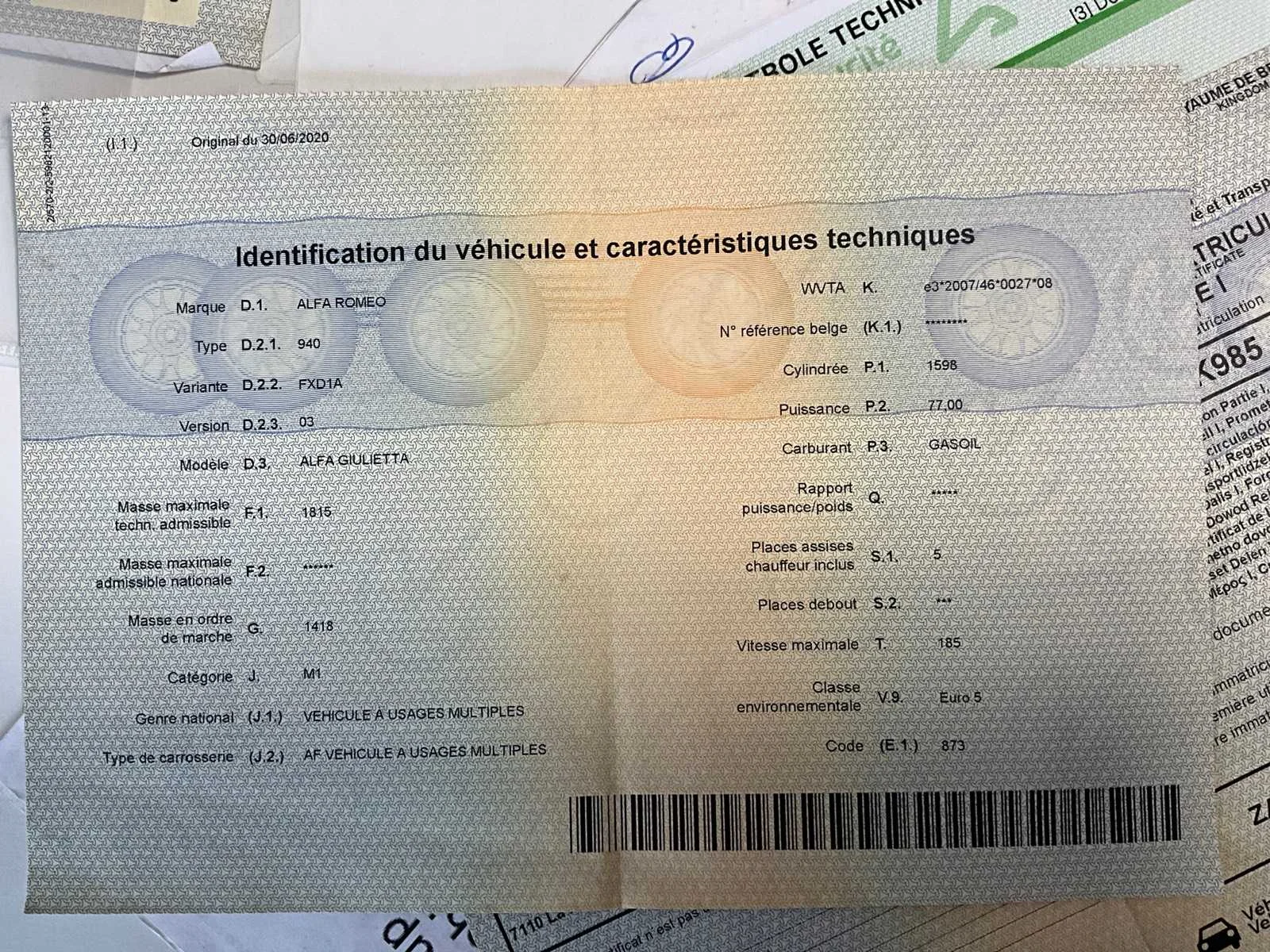 Nee Merk: Alfa Romeo Model: Giulietta Bouwjaar: 2013 Cilinderinhoud: 1598cc Vermogen (kW): 77kW Brandstof: diesel Chassisnummer: ZAR94000007201735 Datum eerste toelating: 04/03/2013 Nationaliteit documenten: Belgisch Start en rijdt: Ja startinformatie : Start en rijdt Inschrijvingsbewijs - deel 1 : Aanwezig Inschrijvingsbewijs - deel 2: Aanwezig