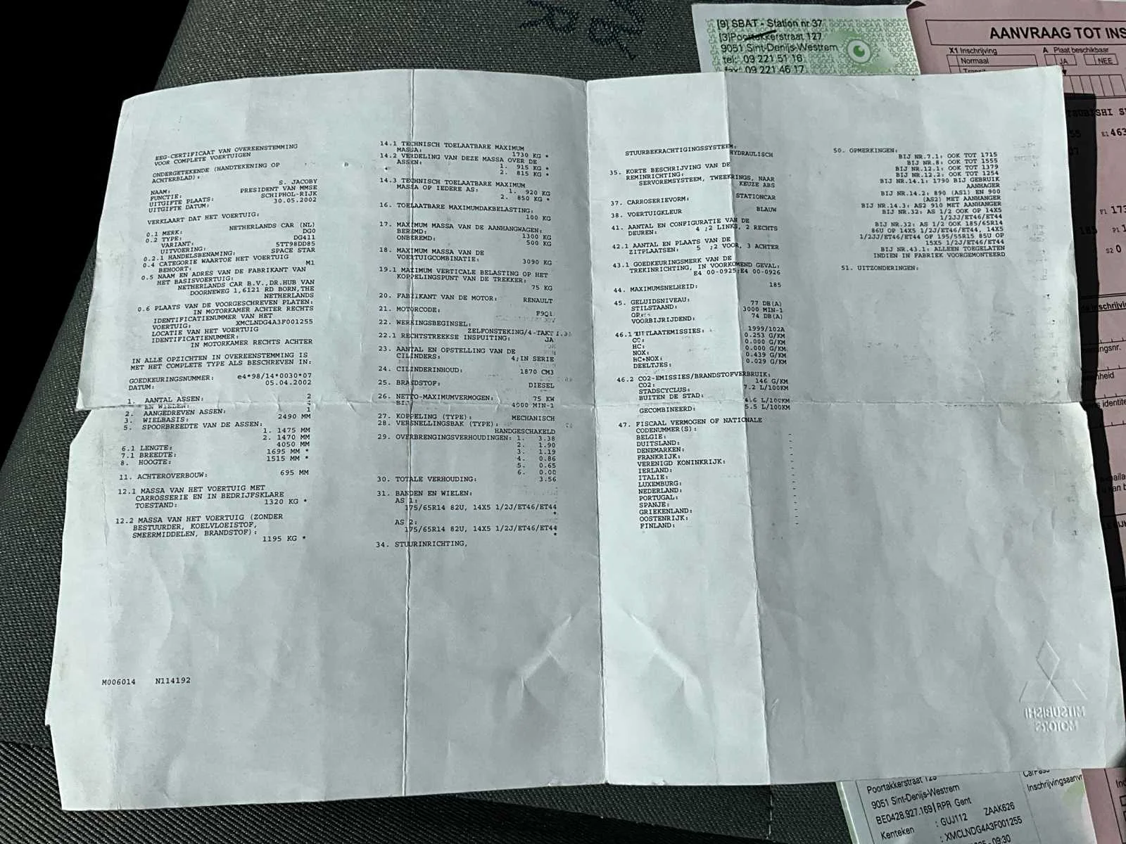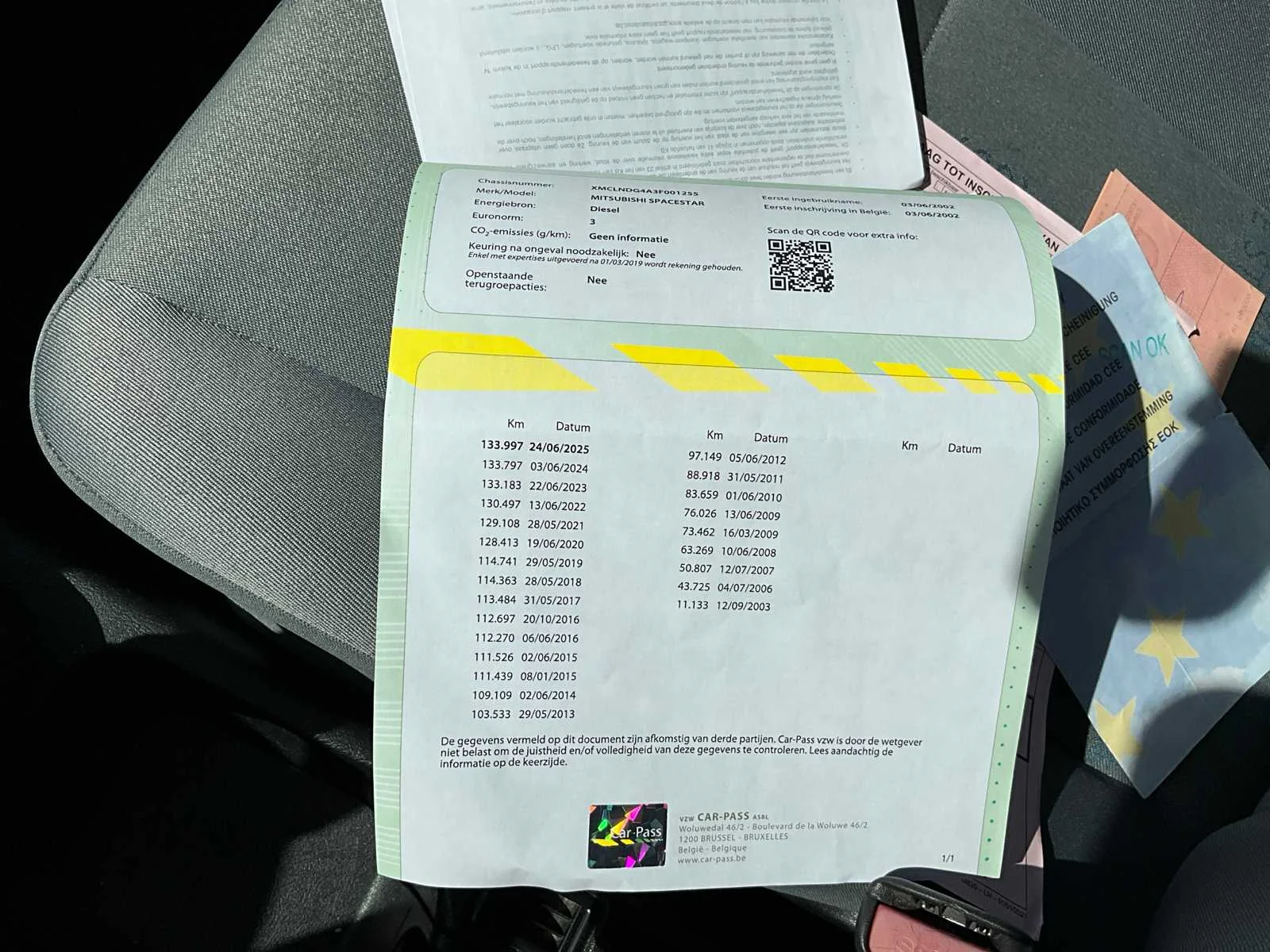 Werkende airco. Carrosserie proper. Alles in goed werkende staat - klaar om in te schrijven. Nee Merk: Mitsubishi Model: Space star Bouwjaar: 2002 Afgelezen kilometerstand: 134044km Cilinderinhoud: 1870cc Vermogen (kW): 75kW Brandstof: diesel Chassisnummer: XMCLNDG4A3F001255 Datum eerste toelating: 16/09/2003 Transmissie: Handgeschakeld Nationaliteit documenten: Belgisch Start en rijdt: Ja startinformatie : Start en rijdt Inschrijvingsbewijs - deel 1 : Aanwezig Inschrijvingsbewijs - deel 2: Aanwezig