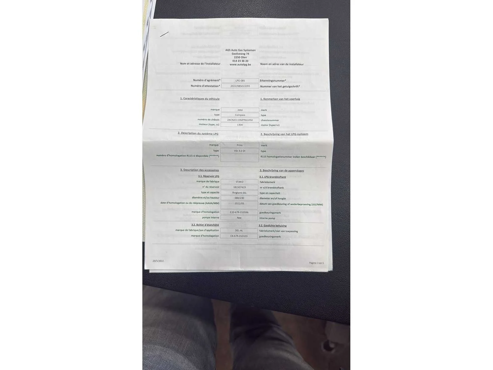 Nee Merk: Jeep Model: Compass Bouwjaar: 2022 Afgelezen kilometerstand: 50831km Cilinderinhoud: 1332cc Vermogen (kW): 110kW Brandstof: lpg+benzine Chassisnummer: ZACNJEC15MPR61050 Datum eerste toelating: 20/02/2022 Aantal zitplaatsen: 5 Transmissie: Automaat Emissieklasse: Euro 6d Aantal deuren: 5 Nationaliteit documenten: Belgisch Vavato voert geen technische keuring uit.: true Airconditioning: true Navigatie: true Inschrijvingsbewijs - deel 1 : Aanwezig Inschrijvingsbewijs - deel 2: Aanwezig