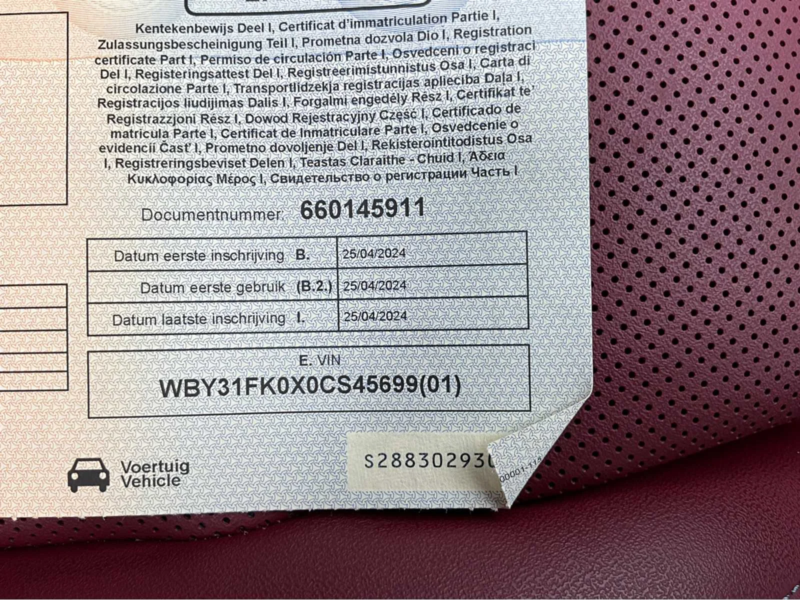 Heeft een M pakket aan de binnen en buitenkant. Full option behalve panoramadak. Nee Merk: BMW Model: I5 eDrive40 Bouwjaar: 2024 Afgelezen kilometerstand: 48363km Vermogen (kW): 250kW Brandstof: elektrisch Chassisnummer: WBY31FK0X0CS45699 Datum eerste toelating: 25/04/2024 Aantal zitplaatsen: 5 Kleur: Zwart Transmissie: Automaat Aantal deuren: 5 Aantal sleutels: 2 Nationaliteit documenten: Belgisch Start en rijdt: Ja startinformatie : Start & rijdt Vavato voert geen technische keuring uit.: true Airconditioning: true Navigatie: true Xenon verlichting: true LED-koplampen: true Leder bekleed: true Inschrijvingsbewijs - deel 1 : Aanwezig Inschrijvingsbewijs - deel 2: Aanwezig