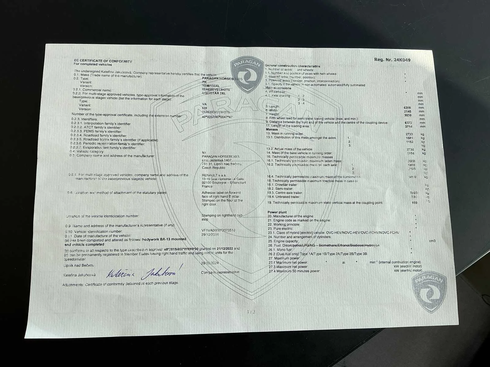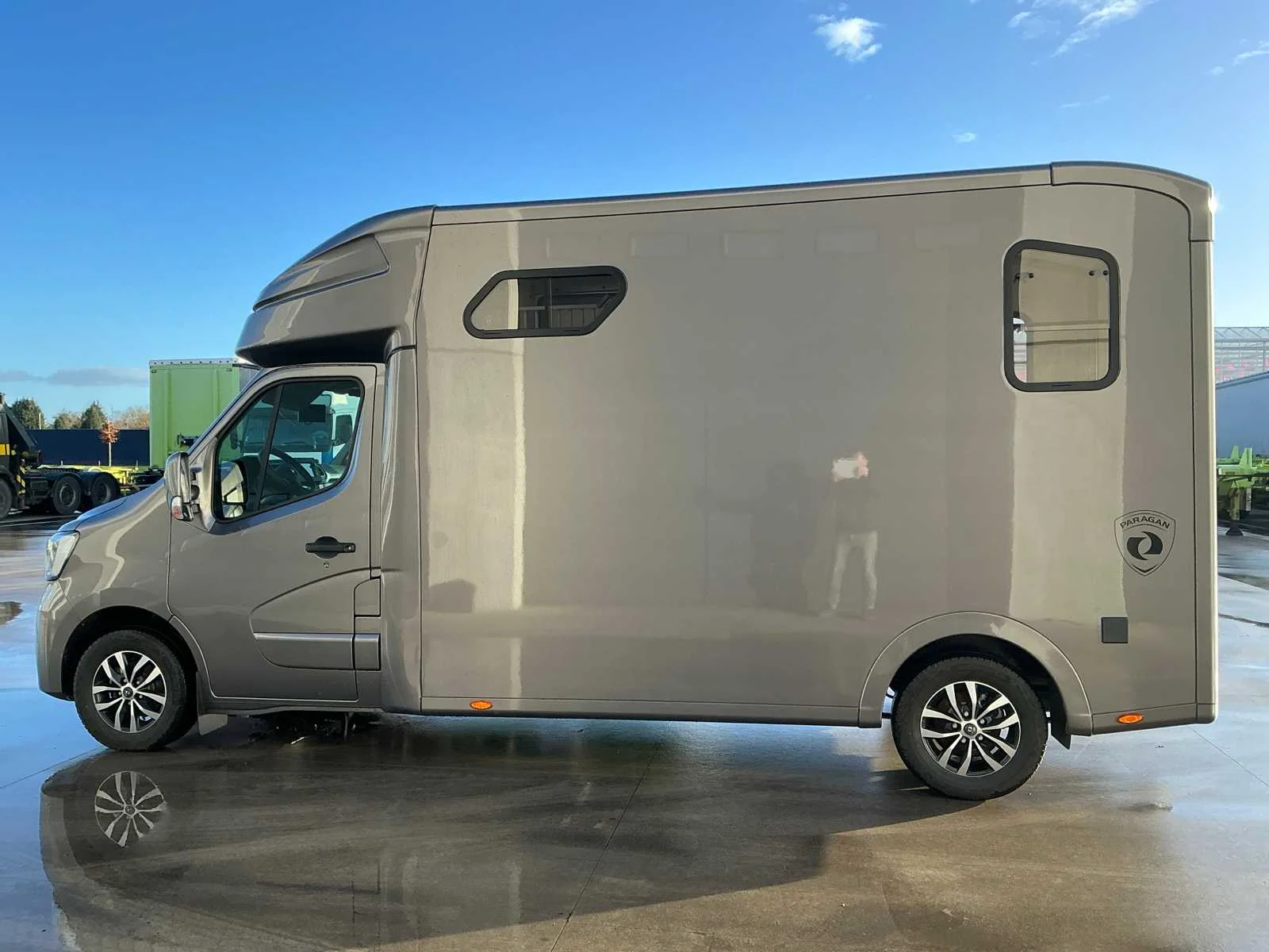 Volledig nieuwe Paragan Equistar 3 XL op Renault Master 2.3 chassis en motor. Laatste versie van de 2.3 liter motor! 150 kilometer op de teller. Wagen werd nog nooit gebruikt als paardenwagen. Zadelhouders worden bijgeleverd. Lederen stuur en handrem. Lederen zetels. Hengsten uitvoering. Wagen werd nog niet ingeschreven maar douane documenten zijn in orde en worden bijgeleverd (zie foto). Nee Merk: Paragan Model: Equistar 3 XL Chassisnummer: VF1VA000973073510 Kleur: Grijs Gewicht: 2733kg Lengte: 640cm Breedte: 214cm Hoogte: 303cm Bouwjaar: 2024