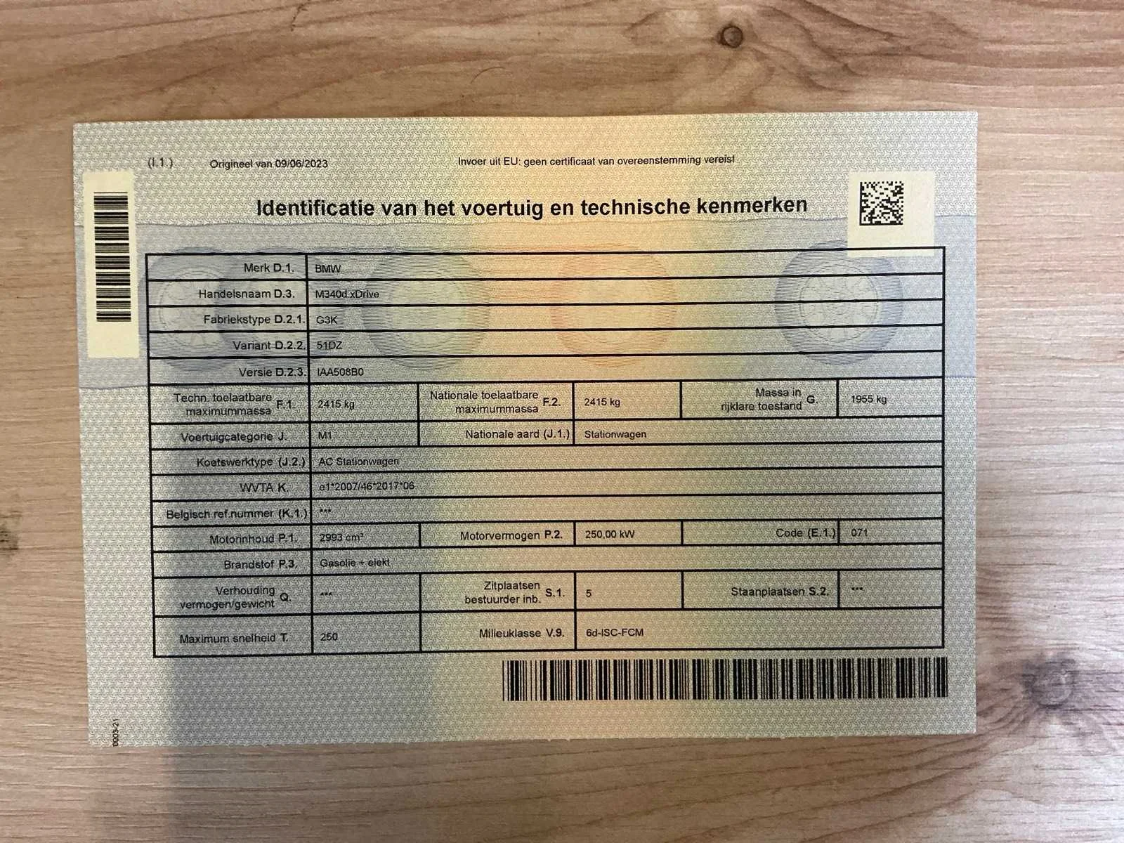 Nee Merk: BMW Model: M340d Type: XDrive Bouwjaar: 2021 Afgelezen kilometerstand: 91412km Cilinderinhoud: 2993cc Vermogen (kW): 250kW Brandstof: hybride (elektrisch+diesel) Chassisnummer: WBA51DZ070FL92255 Laadvermogen: 460kg Datum eerste toelating: 22/09/2021 Vermogen (pk): 340hp Energielabel: 6d Aandrijving: Vierwiel aandrijving Aantal zitplaatsen: 5 Kleur: Tanzaniet Blue II Transmissie: Automaat Accessoires - checkbox: Full option Emissieklasse: 6d-ISC-FCM Aantal deuren: 5 Aantal sleutels: 2 Ledig gewicht: 1955kg Aantal cilinders: 6 Carrosserie: Stationwagen Nationaliteit documenten: Belgische Gelijkvormigheidsattest aanwezig: true Carpass: true Start en rijdt: Ja Technische fiche: true Zichtbare schade: Neen Self drive export possible : true Airconditioning: true Navigatie: true Xenon verlichting: true LED-koplampen: true Leder bekleed: true Vierwielaandrijving 4x4: true Inschrijvingsbewijs - deel 1 : Aanwezig Inschrijvingsbewijs - deel 2: Aanwezig