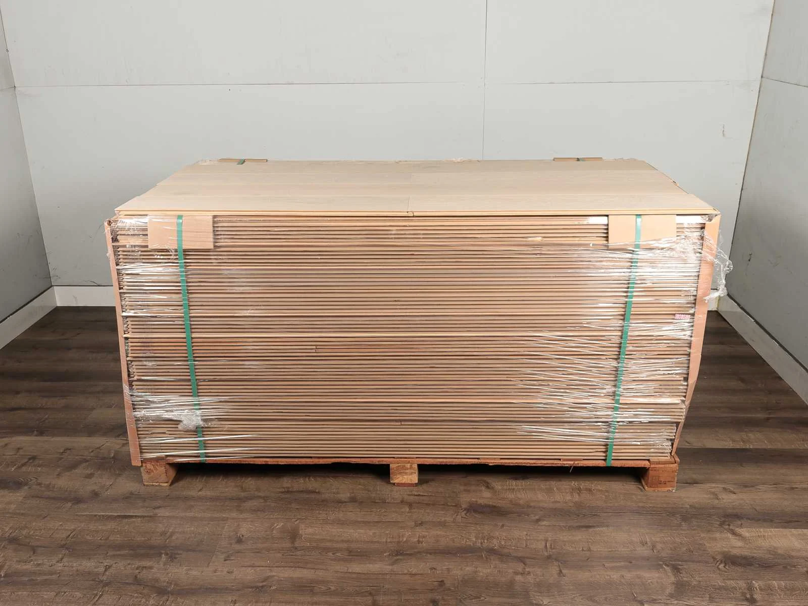 Gemakkelijk te leggen wegens clicksysteem, geschikt voor alle soorten vloer en koelverwarmingen, kwaliteits parketvloer, vloer is van hoogwaardig Europees eiken hout, kant en klaar behandeld, dikte 13,5 mm, toplaag 3 mm, 18 pakken a 2,075 m2 Nee Merk: Angelwood Product type: Parket Oppervlakte: 37m² Geschikt voor vloerverwarming: Ja V-groef: Ja Afwerking: Geolied, geborsteld, met v-groef Aantal m² per verpakking: 2.075m² Kleur: U-81802 Gewicht: 360kg Lengte: 1820mm Breedte: 190mm Materiaal: Eiken multiplank