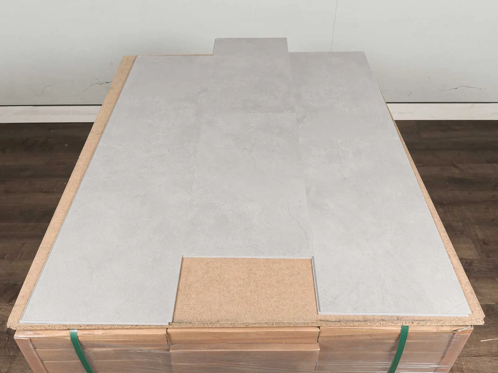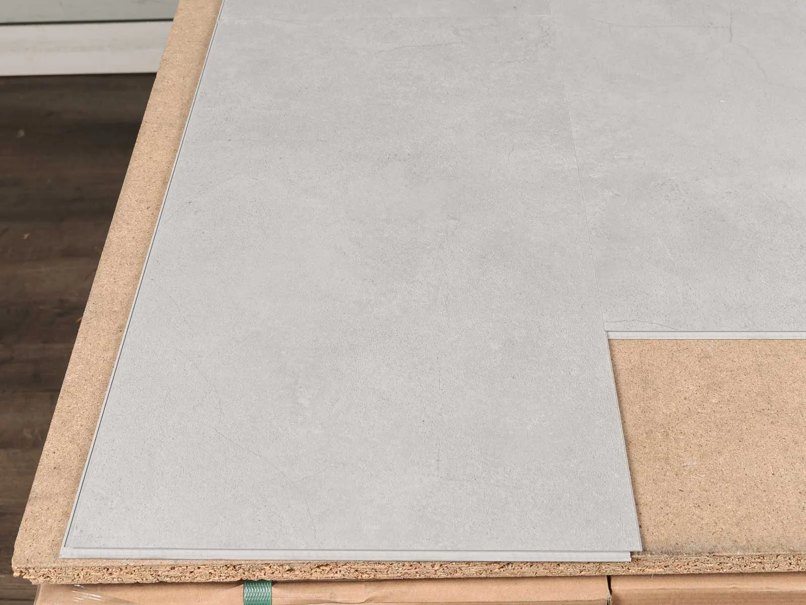 PVC click vloer, tegel formaat, water bestendig, vorstbestendig, ideaal voor vloerverwarming, kras en slijtvast, anti slip, 13 pakken a 2,05 m2 Nee Merk: Airial flooring Product type: PVC Oppervlakte: 26m² Geschikt voor vloerverwarming: Ja V-groef: Nee Afwerking: Voelbaar structuur, anti slip Aantal m² per verpakking: 2.05m² Kleur: Concrete light 801 Gewicht: 220kg Lengte: 610mm Breedte: 305mm Materiaal: PVC