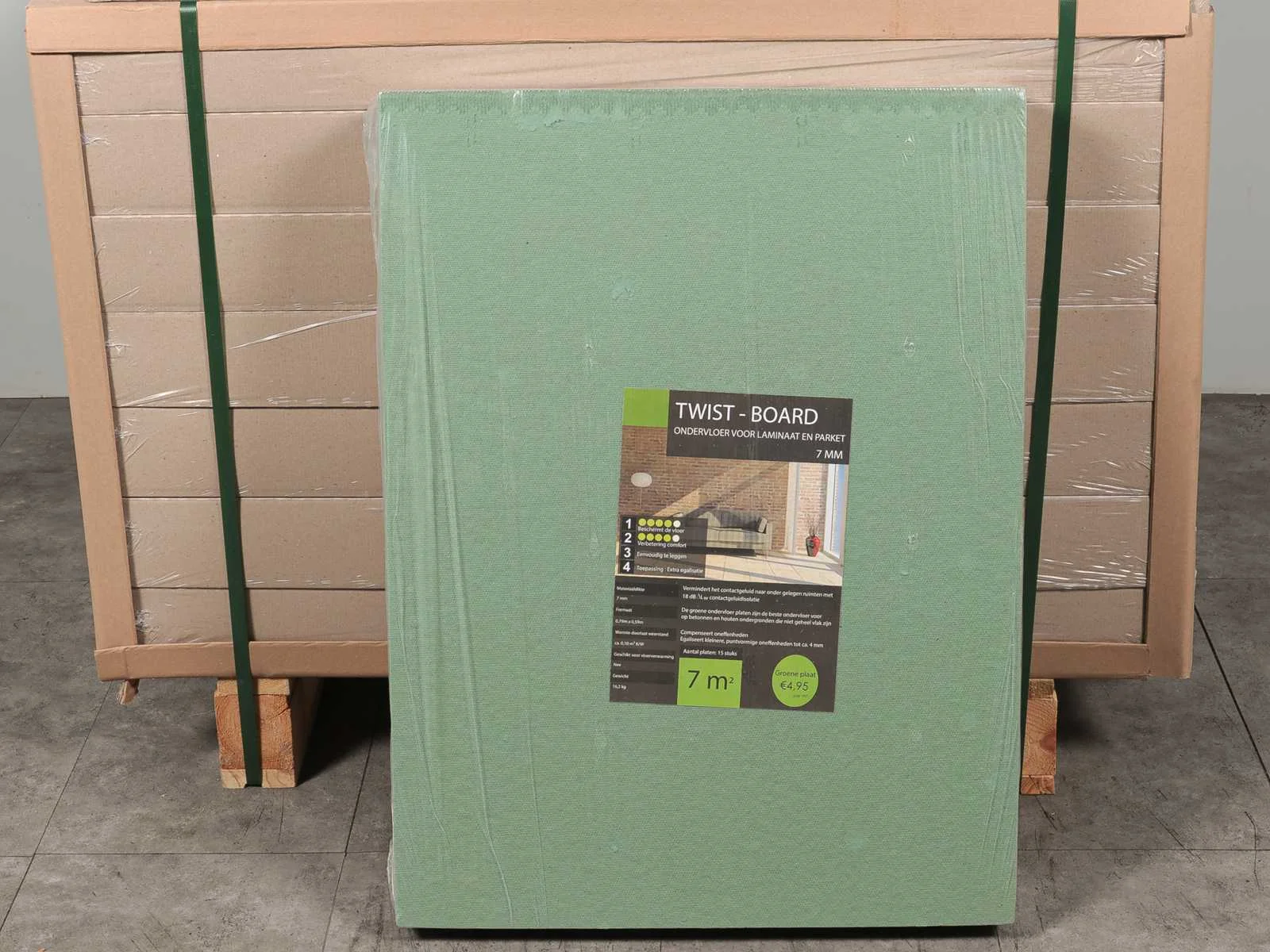18db geluidscontactisolatie, 20 ton per m2 drukstabiliteit, egaliserend, milieu vriendelijk, 16 pakken a 7 m2 Nee Merk: Twist Product type: Ondervloer Oppervlakte: 112m² Aantal m² per verpakking: 7m² Kleur: Isoboard